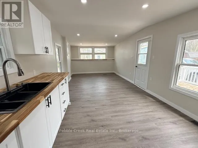 Amazing value! This beautiful, fully renovated home is located in Huron Haven Village, a charming year-round land lease community located minutes north of Goderich. The home sports a new kitchen, new 3 pc bath with laundry hook ups, spacious bedroom and attached family room or possible second bedroom. New laminate flooring and pot lights have been installed throughout as well.