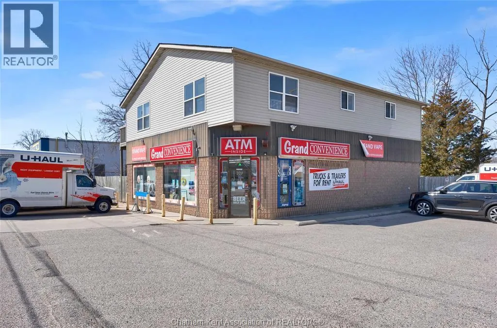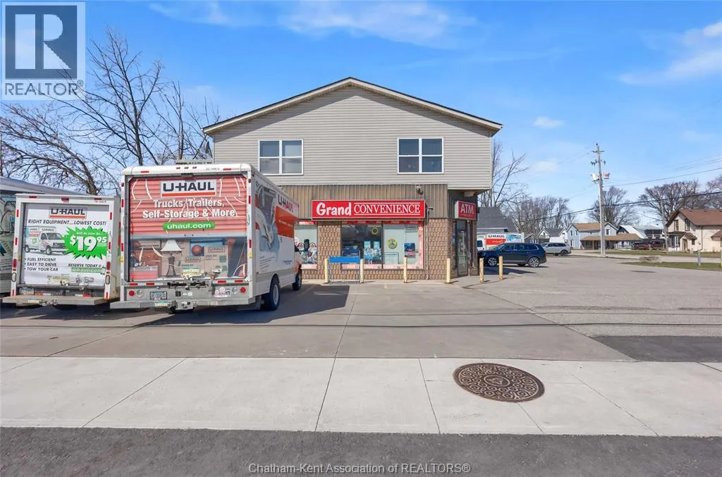 High traffic corner locations like this are hard to acquire in Chatham, especially with ample parking and high visibility. This purpose built retail store with residence above offers endless possibilities for a live/work arrangement or just multi-purpose investment. The main level is approx. 1900 sq ft and is operating as a leased variety store. Potential higher uses