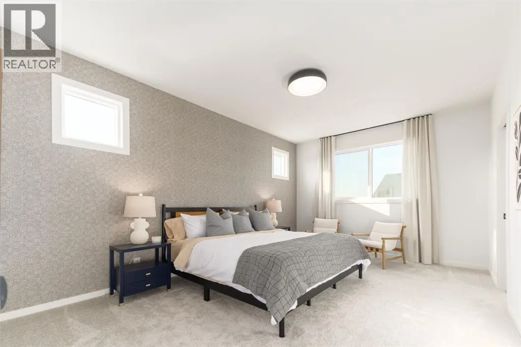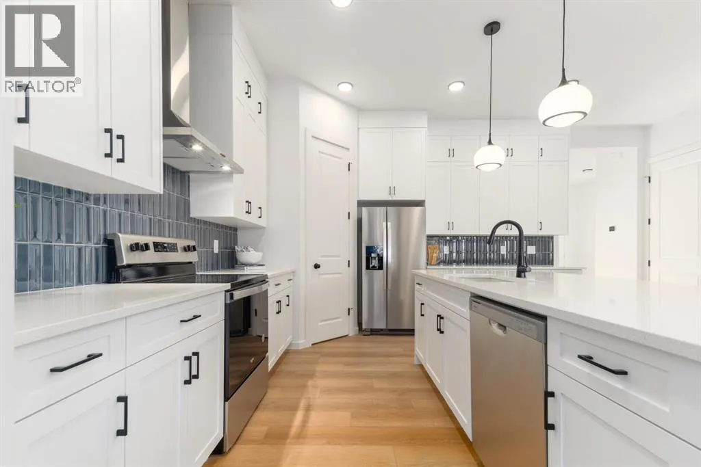 layout that feels both warm and impressive. At its heart is a beautifully upgraded kitchen, finished to the ceiling with crisp white cabinetry, quartz countertops, a brand-new stainless steel appliance package, and a spacious walk-in pantry. The open-concept design flows seamlessly into the living room, where a modern fireplace creates both a stylish focal point and a sense of comfort. A large dining area overlooks the private backyard, with glimpses of the rolling hills beyond. Completing this level is a flexible room that can adapt to your needs — whether as a home office, guest bedroom, mudroom, or playroom. Upstairs, 9-foot ceilings and expansive windows flood the home with natural light. Double doors lead to the serene primary bedroom, a true retreat featuring a spa-inspired ensuite with dual vanities, a soaker tub, and a generous walk-in closet. In the opposite wing, two additional bedrooms — each with their own walk-in closet — share a well-appointed family bath. A convenient laundry room is thoughtfully designed to keep life organized. At the center of it all sits a dramatic bonus room with a vaulted ceiling and striking blue feature wall, perfectly suited for movie nights, games, or quiet relaxation while also offering a natural separation between the primary suite and secondary bedrooms. The lower level continues the sense of openness with 9-foot ceilings and a beautifully executed side entrance, providing the a space for in-laws. A dedicated wellness room and a spacious recreation area enhance the lifestyle appeal, while an additional bedroom and full bathroom make this level ideal for guests, older children, or extended family. Outside, mountain-inspired architecture with timber accents blends seamlessly into the surroundings. With full landscaping and a finished deck already complete, this turnkey home is ready to be enjoyed from the moment you arrive. Nestled in Southwest Calgary, the community of Sirocco offers everything from scenic golf course views to vibrant local amenities and over 5 km of connected pathways. Honoring its heritage while embracing modern convenience, Sirocco is a place where rolling foothills and nearby trails bring the peace of country living within easy reach of the city. Don’t miss on experiencing this spectacular well thought out home. (id:64429)