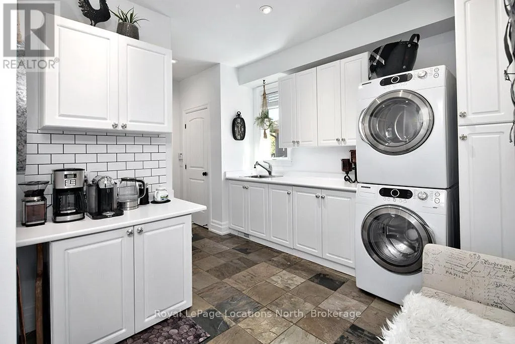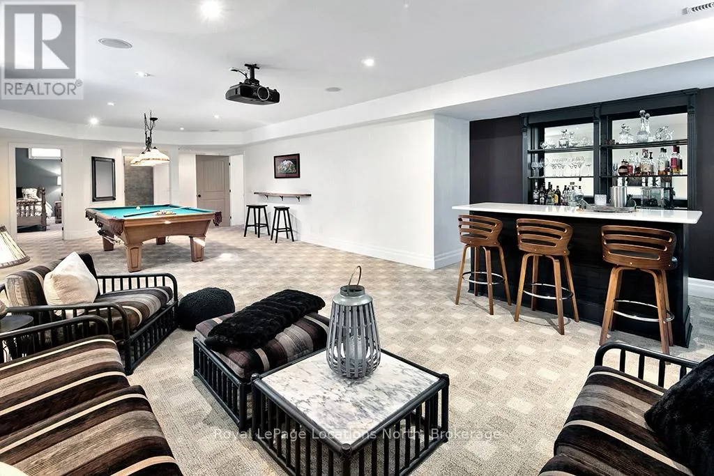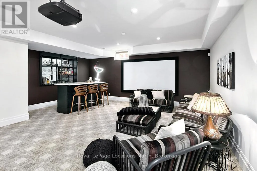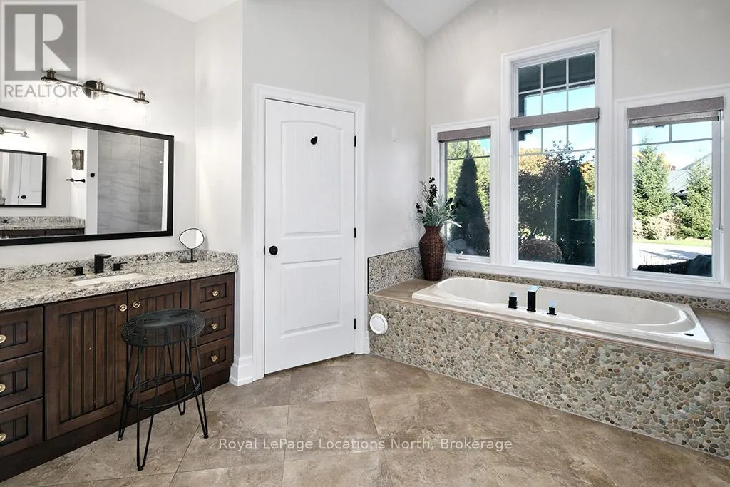 Discover over 5,300 square feet of beautifully appointed living space in this 5 bed, 4 bath home located in the Lora Bay community, just mins from downtown Thornbury.The open-concept main floor welcomes you with soaring ceilings in the great room, highlighted by a striking floor-to-ceiling stone wood-burning fireplace that creates a warm and inviting focal point. The chef’s kitchen offers
