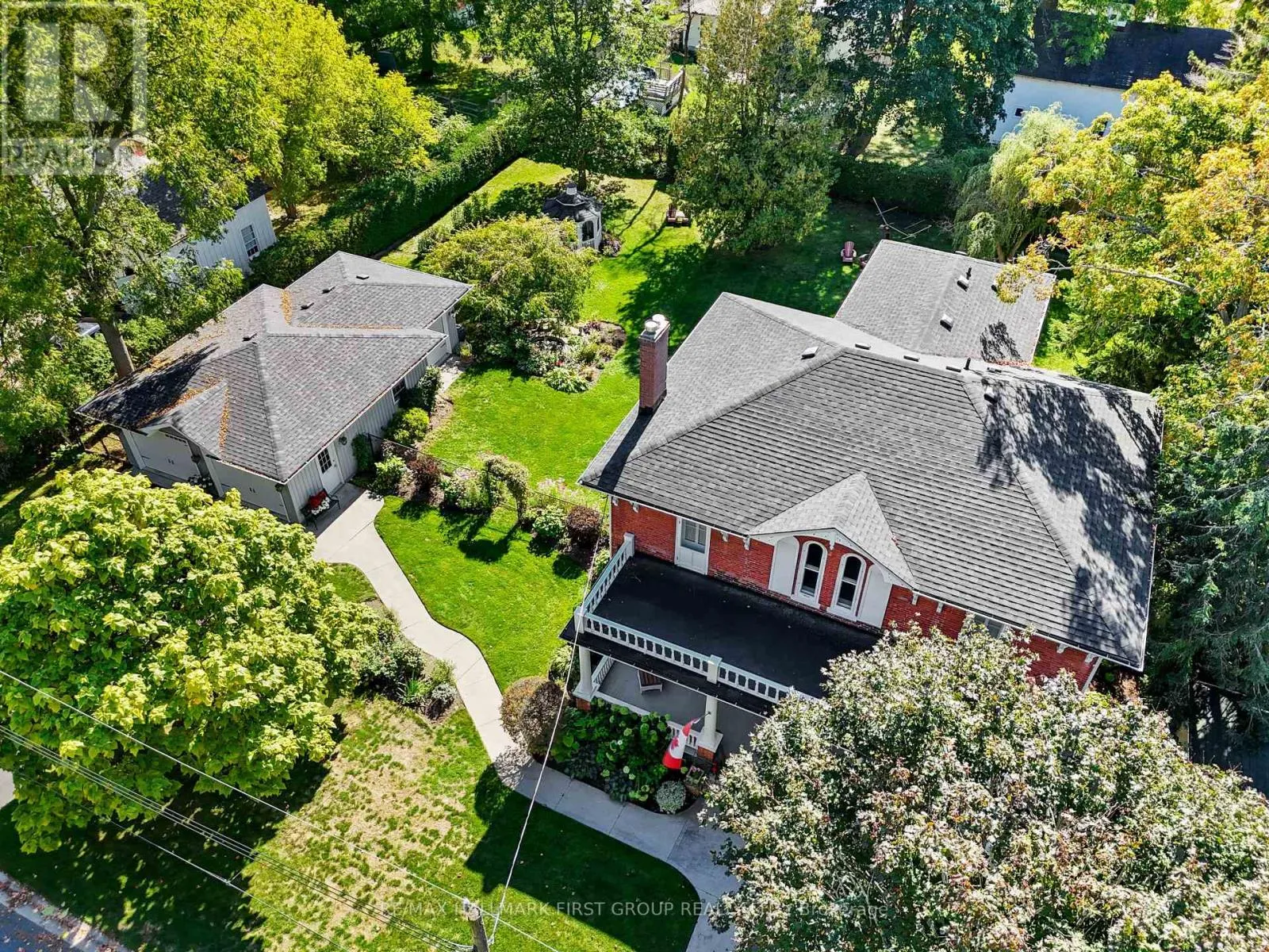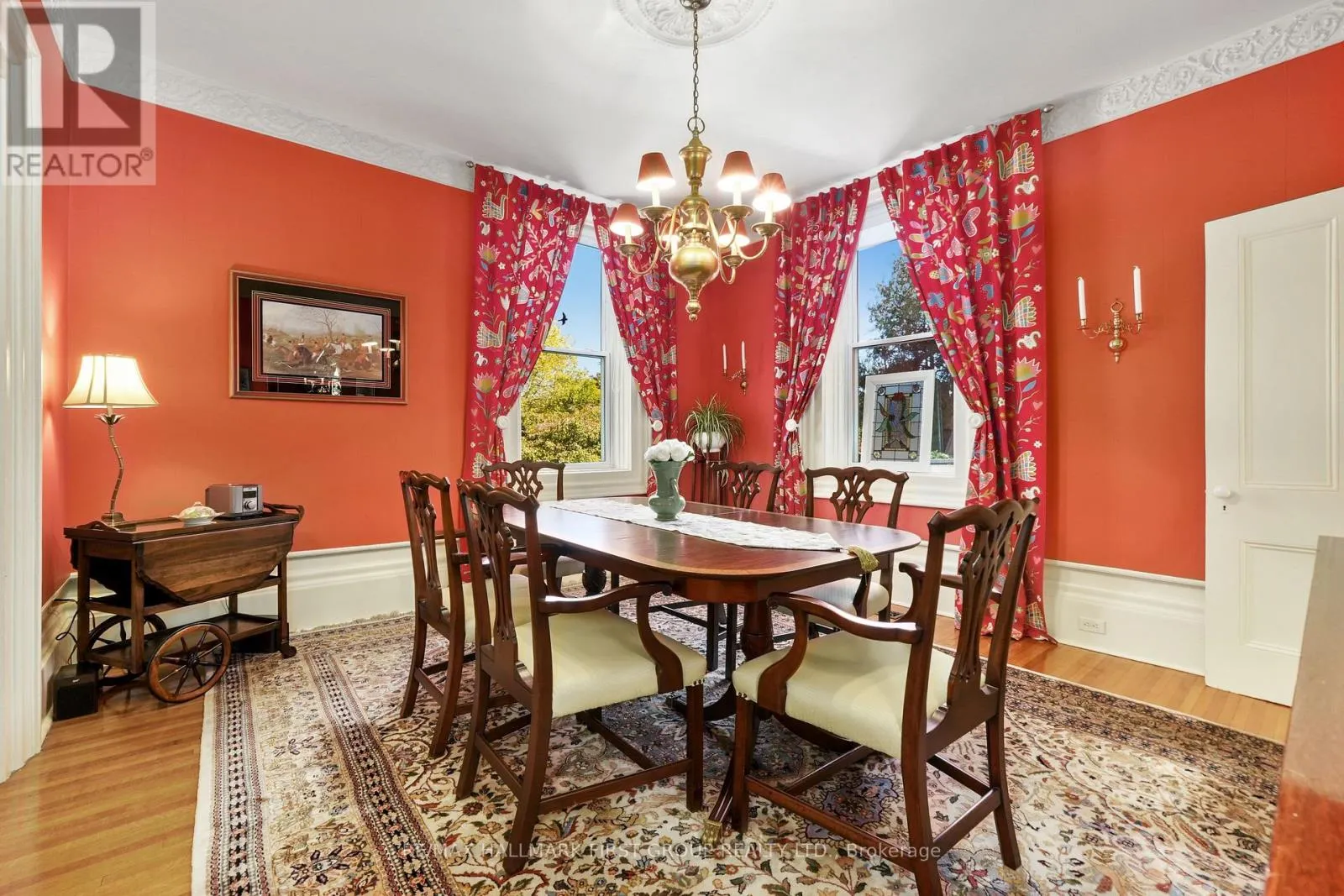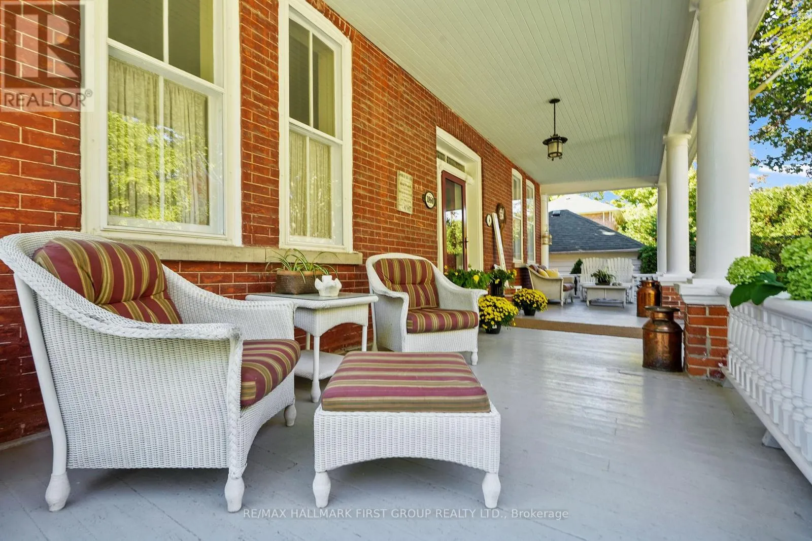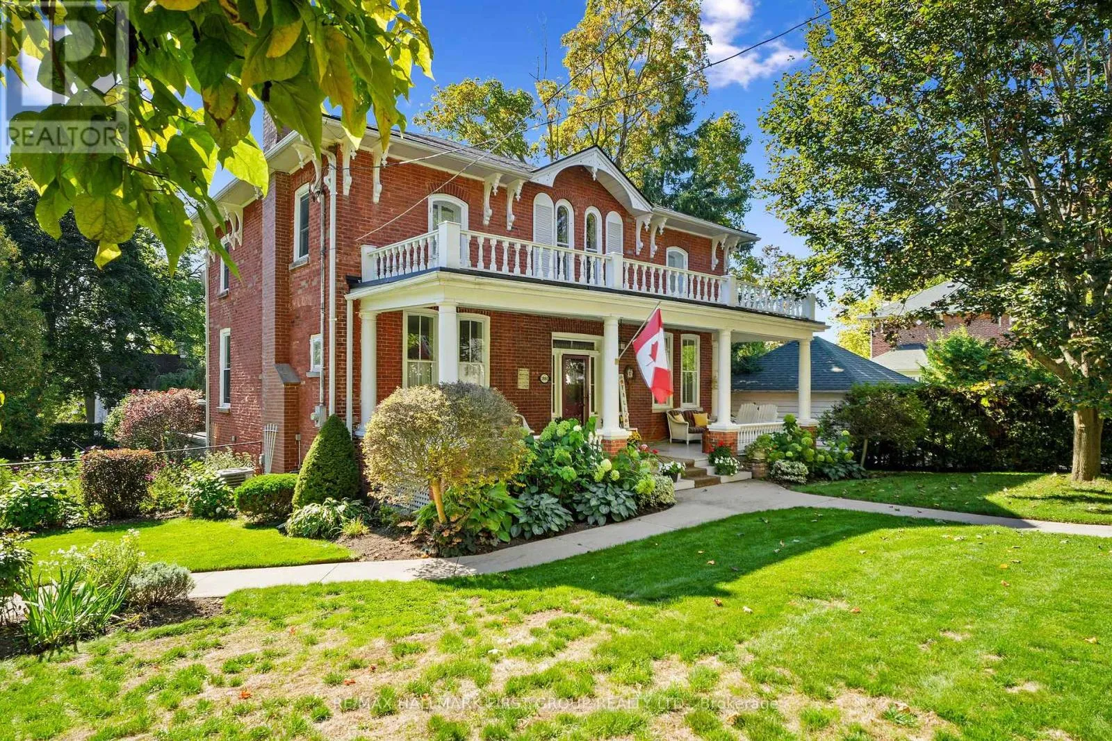 This character-filled two-storey red brick century home, circa 1860s, blends historic charm with generous living space and modern convenience. A covered front veranda, surrounded by meticulously maintained perennial gardens, sets the tone for the timeless elegance found throughout. Inside, the main floor showcases period details including extra-wide baseboards, detailed crown mouldings, and decorative ceiling coins. The sunlit front living room