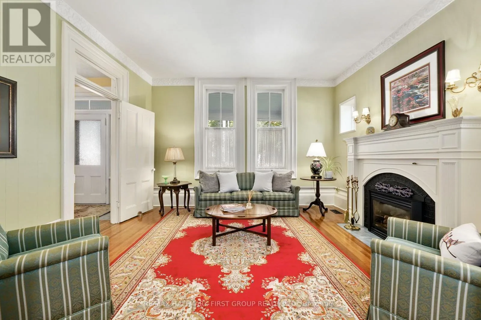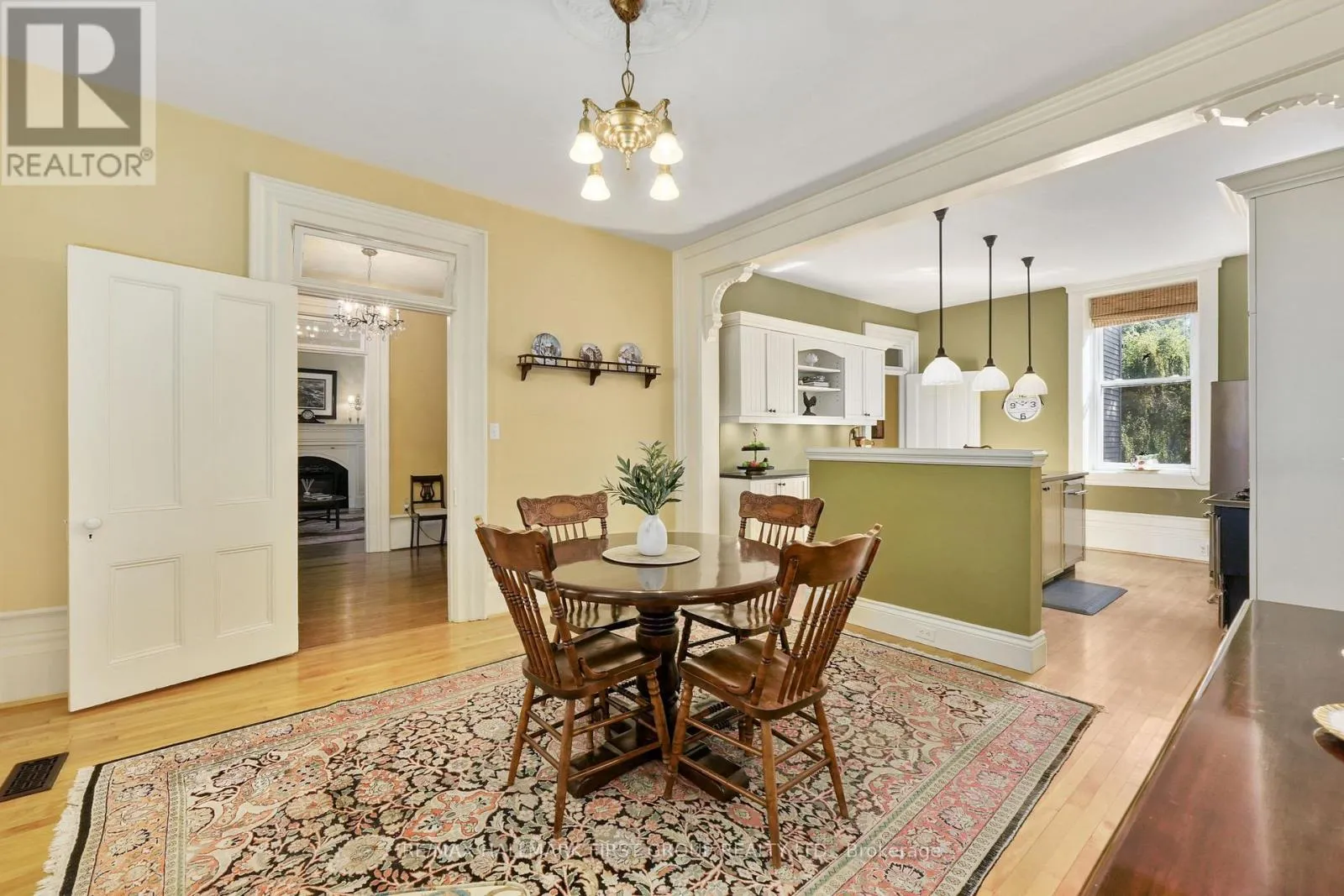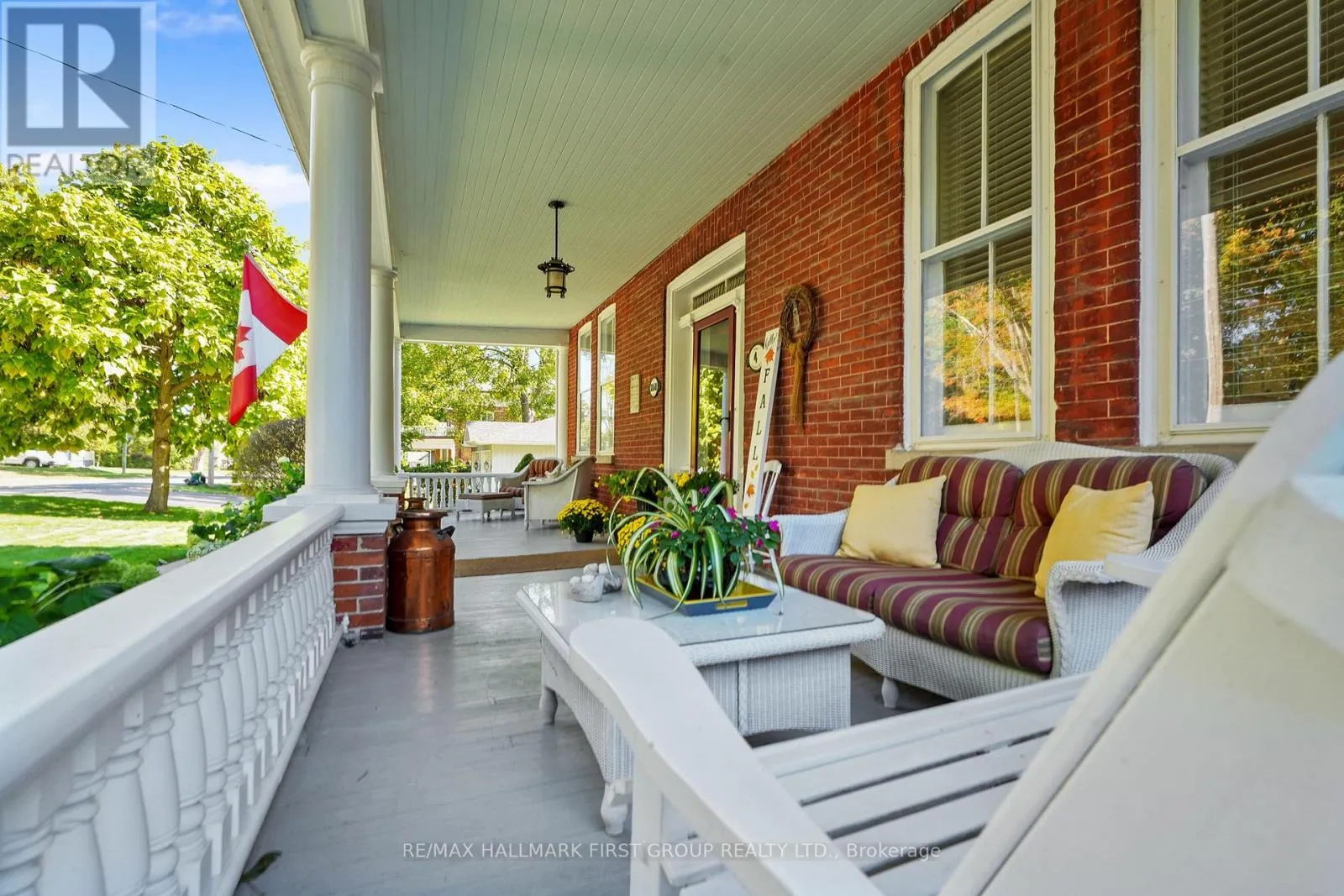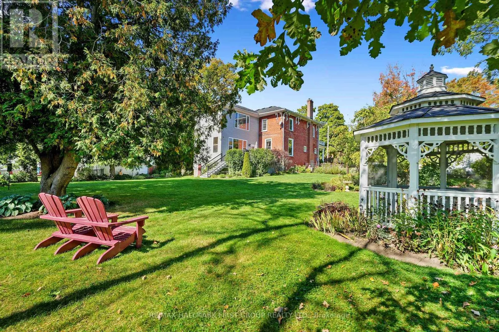 This character-filled two-storey red brick century home, circa 1860s, blends historic charm with generous living space and modern convenience. A covered front veranda, surrounded by meticulously maintained perennial gardens, sets the tone for the timeless elegance found throughout. Inside, the main floor showcases period details including extra-wide baseboards, detailed crown mouldings, and decorative ceiling coins. The sunlit front living room