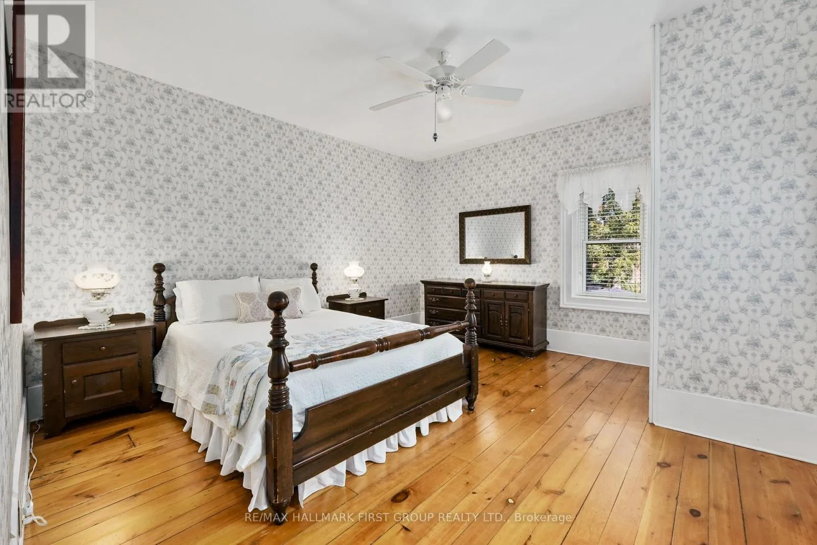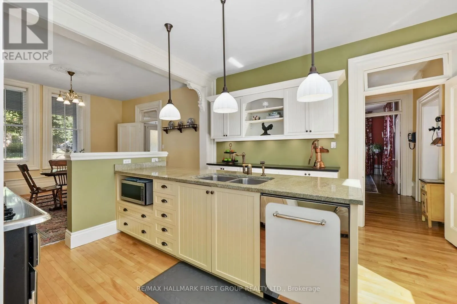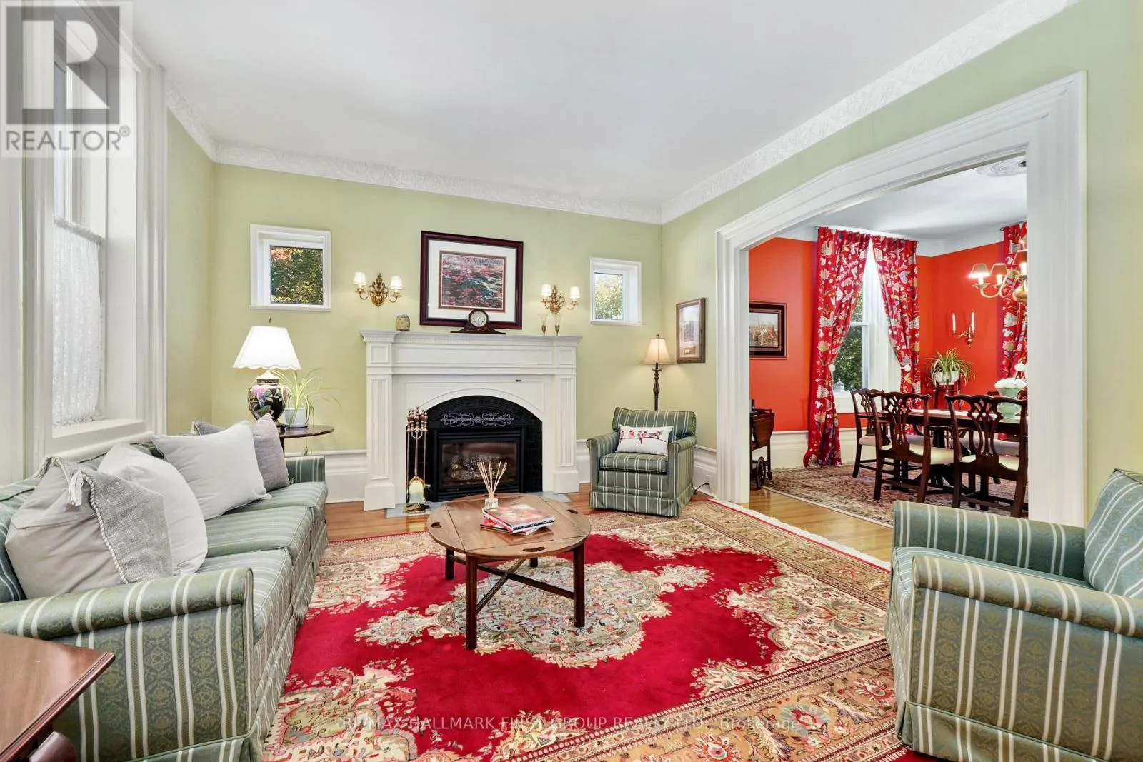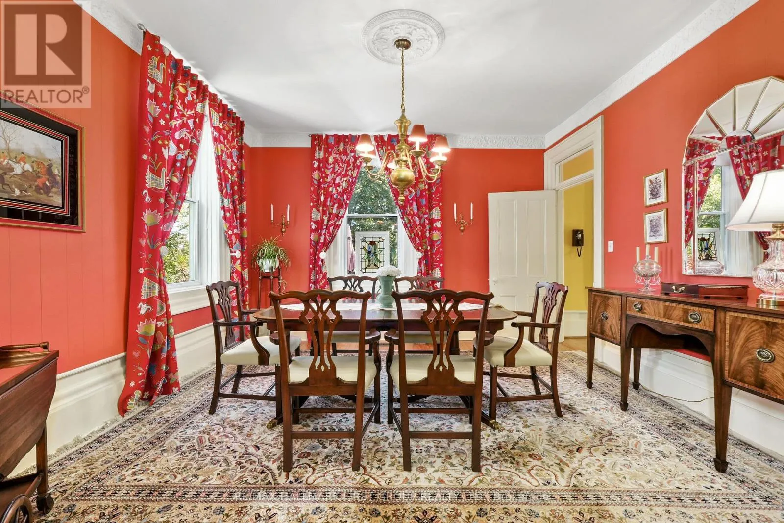 This character-filled two-storey red brick century home, circa 1860s, blends historic charm with generous living space and modern convenience. A covered front veranda, surrounded by meticulously maintained perennial gardens, sets the tone for the timeless elegance found throughout. Inside, the main floor showcases period details including extra-wide baseboards, detailed crown mouldings, and decorative ceiling coins. The sunlit front living room