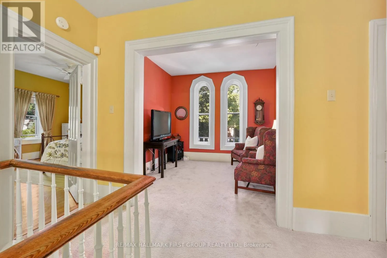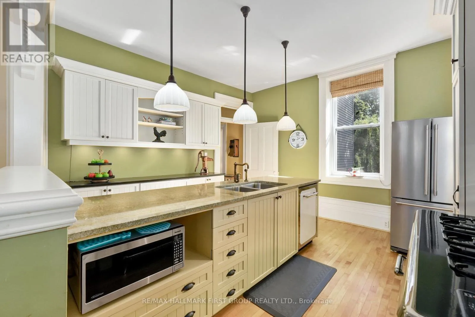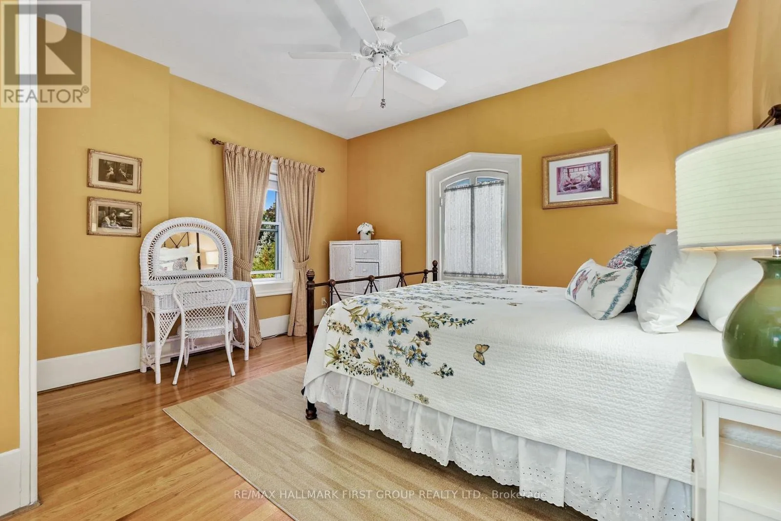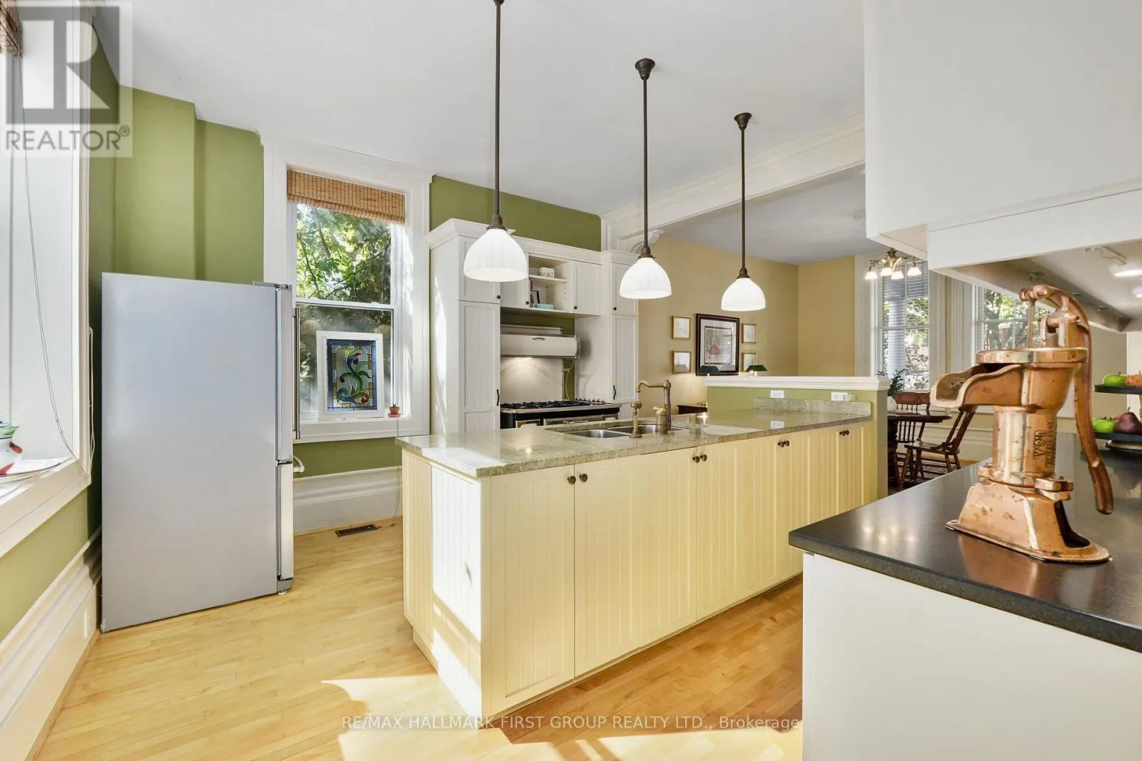 This character-filled two-storey red brick century home, circa 1860s, blends historic charm with generous living space and modern convenience. A covered front veranda, surrounded by meticulously maintained perennial gardens, sets the tone for the timeless elegance found throughout. Inside, the main floor showcases period details including extra-wide baseboards, detailed crown mouldings, and decorative ceiling coins. The sunlit front living room