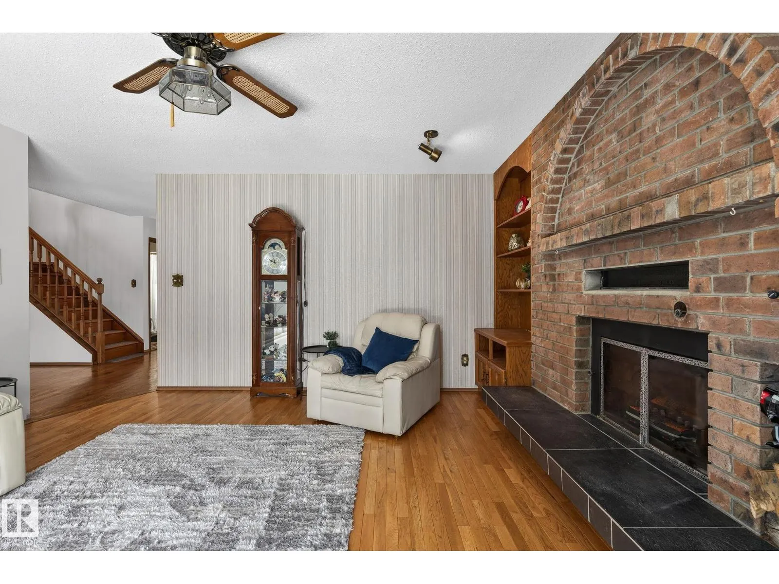 Home Sweet Home! Welcome to this classic Ace Lange built family home in the highly sought after neighbourhood of Ramsay Heights! Lovingly maintained by the current owner for the past 33 years. Main floor boasts an inviting foyer. Spacious living room with large bow windows. Cozy family room has brick featured fireplace & built-in shelvings, patio door onto the patio.