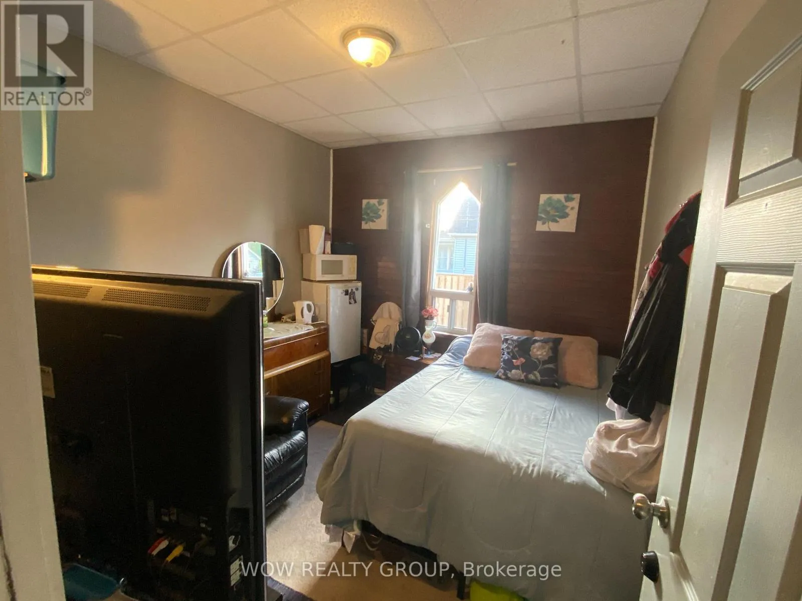 This former church building (duplex and/or single family home) offers a very spacious owner occupied rear unit (with 5 bedrooms, kitchen, dining room, living room, laundry, pantry and 3 pc bathroom plus a large patio area) and a front unit with 6 large bedrooms, currently rented, with each bedroom having its own 2 pc washroom (5 rooms @ $700/month and
