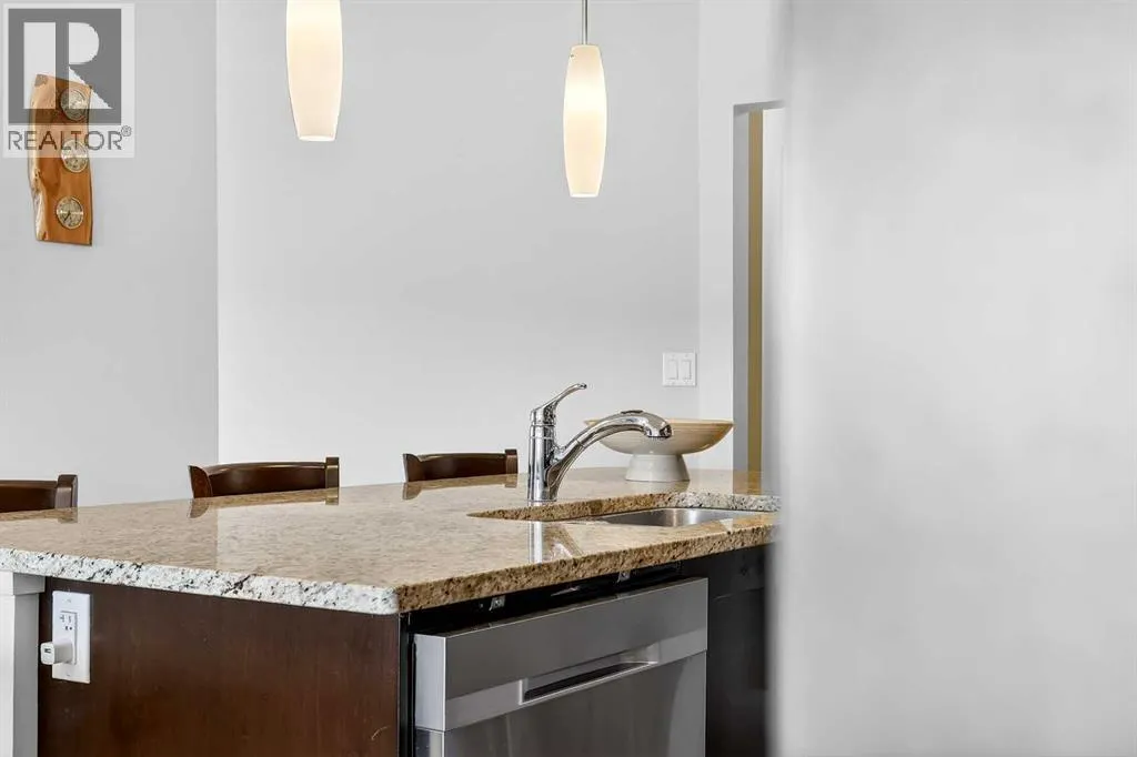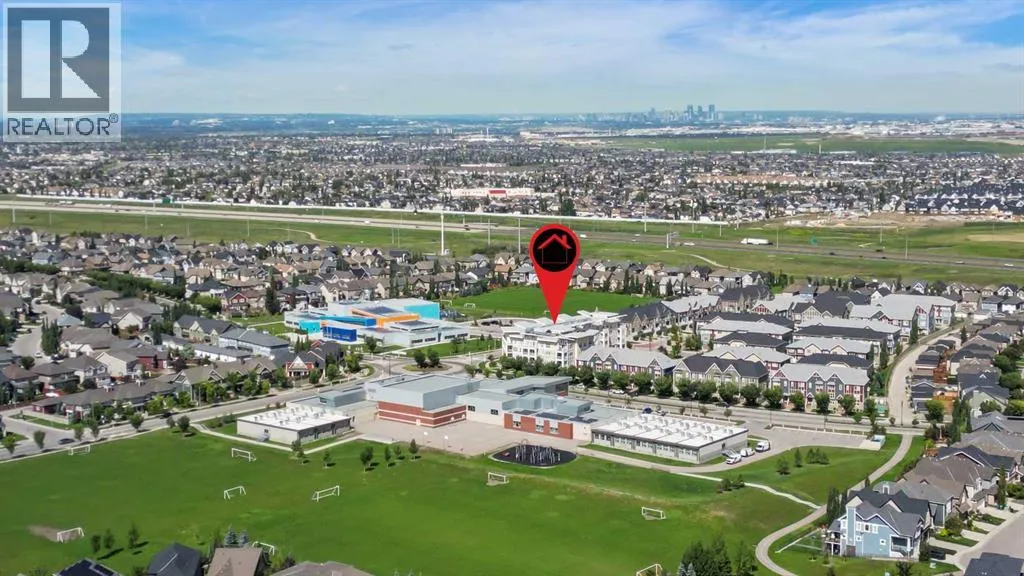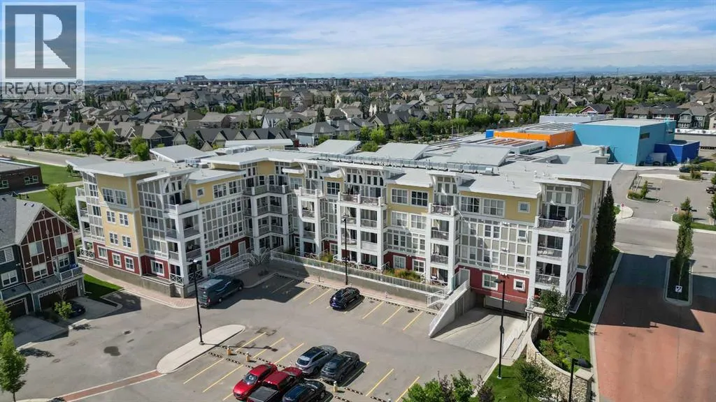 From the moment you step inside, you are greeted by soaring ceilings just under 9 feet and oversized windows in both the living room and primary suite—creating a bright, open atmosphere that feels expansive and inviting. Bathed in warm evening sunlight, this home offers a truly special ambiance to be enjoyed throughout all four seasons. The kitchen is both stylish and functional, featuring rich dark cabinetry, elegant granite countertops, and a full stainless steel appliance package. A generous walk-in pantry provides exceptional storage and organization, while in-suite laundry adds everyday convenience. The kitchen flows seamlessly into the open-concept living and dining area, where warm-toned laminate flooring grounds the space and creates a cohesive, welcoming feel. The primary suite is a peaceful retreat, complete with a walk-through closet and a beautifully appointed 3-piece ensuite featuring granite countertops, timeless tile flooring, and an oversized walk-in shower with sleek glass doors. The second bedroom is equally impressive, offering a unique layout with a charming niche perfect for a reading nook, a Murphy bed for added versatility, and easy access to the 4-piece main bathroom—ideal for guests or family. This home is loaded with additional features that elevate everyday living, including air conditioning, a spacious private deck with BBQ gas line, and the rare bonus of two tandem parking stalls. Residents of Ebony also enjoy access to an on-site fitness facility, playground, visitor parking, and the added peace of mind that comes with nearby traffic-calming school zones. The location is simply unbeatable—just a few blocks from Mahogany’s private lake and beach club, and directly across the street from two schools. Enjoy endless opportunities for outdoor living with nearby parks, pathways, and playgrounds, along with convenient access to shopping, dining, and major routes in and out of the community. This is more than a condo—it’s a lifestyle defined by light, space, and the vibrant energy of lake living. If you’ve been searching for a home that offers exceptional design, incredible exposure, and everyday comfort in one of Calgary’s most sought-after communities, this is the one. (id:62650)