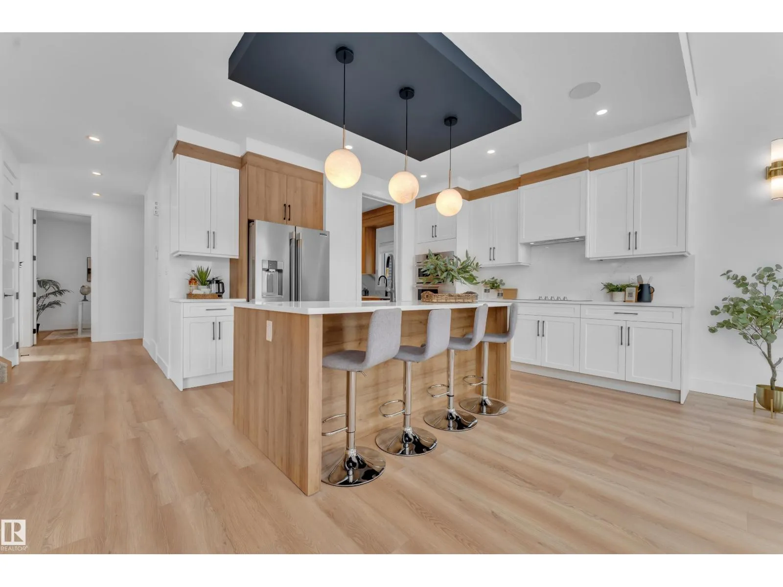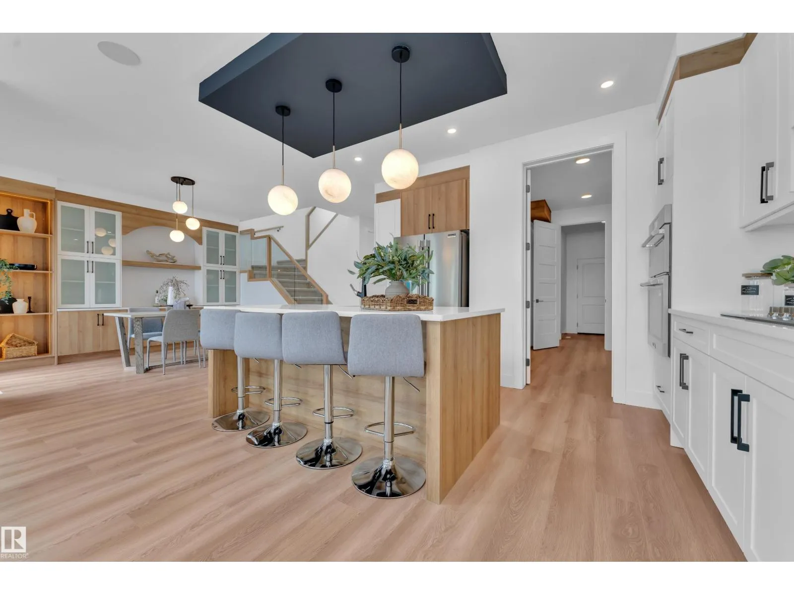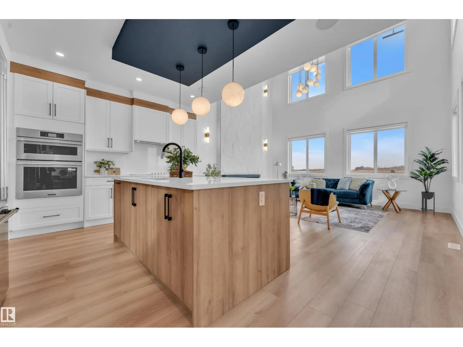 Backing onto park, stunning 2-storey home on a 28 Pkt REGULAR LOT offers 2666 SF of modern living. Beautifully designed open to above LIVING AREA WRAPPED WITH 8 MASSIVE WINDOWS, filling the home with natural light. MAIN FLOOR FULL BED & BATH, MASSIVE SPICE KITCHEN, large island and elegant cabinetry flows into a spacious living area OVERLOOKING GREEN SPACE. Upstairs