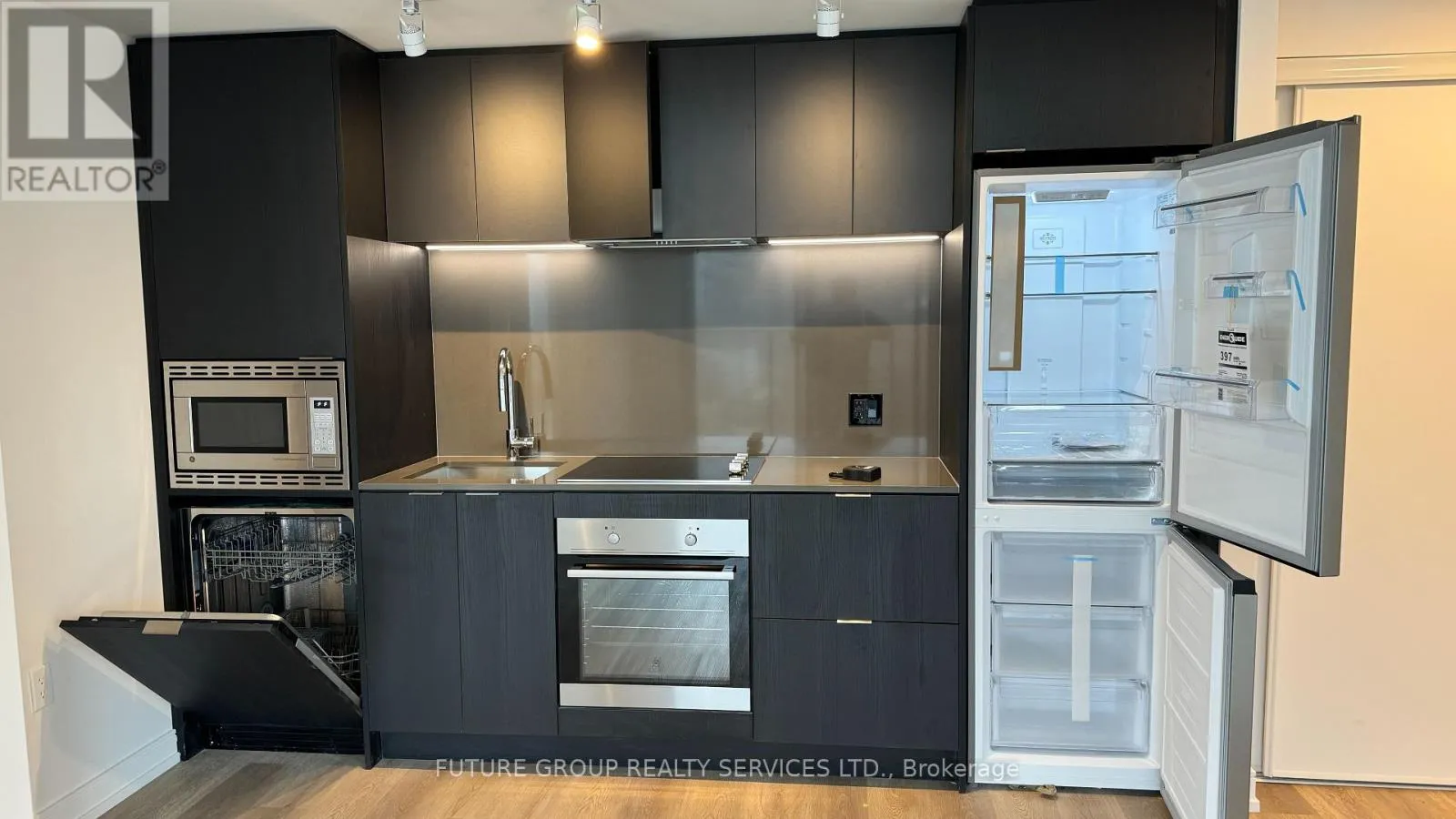 TRENDY & CHIC living with breathtaking all around balcony of a clear view to Downtown Hamilton. Welcome to 1 Jarvis! This ( 934 sq ft – 748 interior/186 exterior ) corner unit with wrap around balcony features 2 Bedroom, 2 Full Bathrooms, Modern Kitchen with SS Fridge, Cooktop, Built In Oven, Built In Microwave, Full Size Dishwasher, In-Suite laundry all