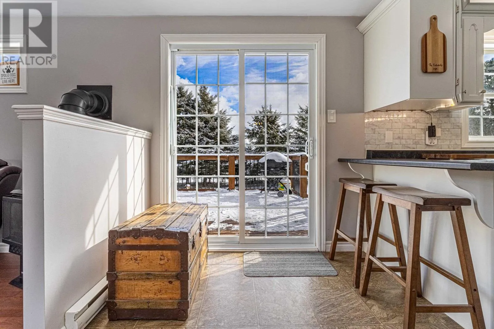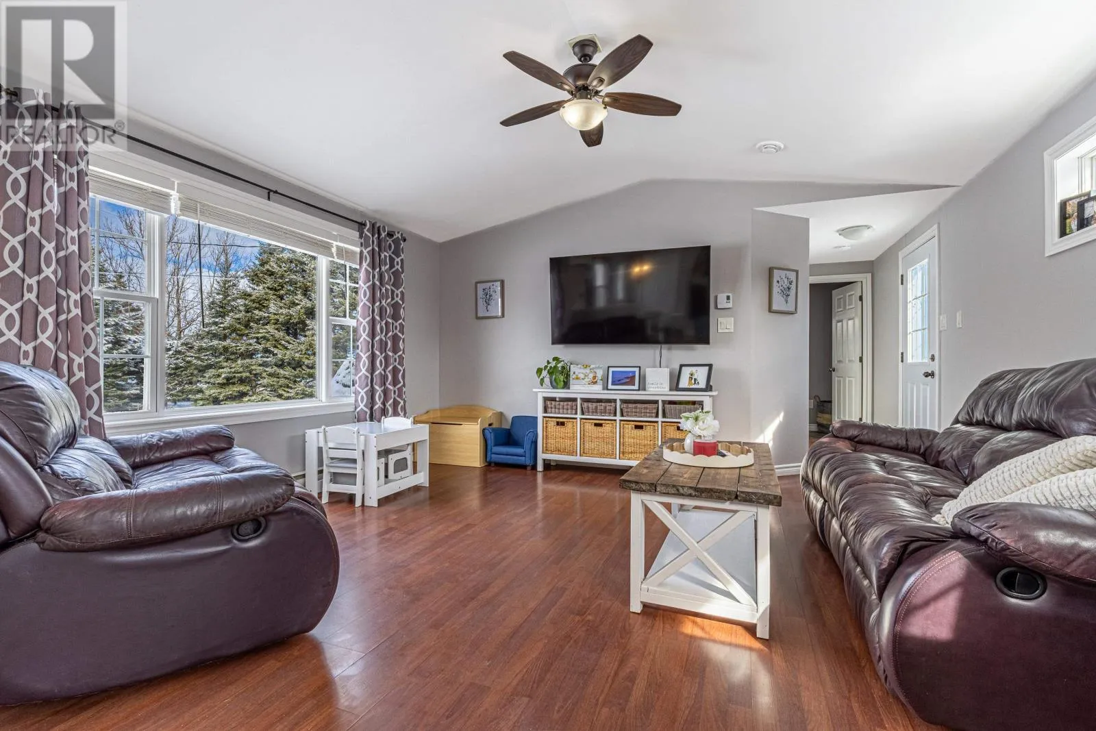 Tucked away on a large, private, tree-lined lot in Oyster Bed Bridge, this well-maintained 3-bedroom, 1-bath, split layout mini-home offers comfort, space, and a sought-after North Shore lifestyle. The bright, open-concept living area features cathedral ceilings and a cozy propane fireplace. A smart split floor plan places the large primary bedroom at one end of the house and two additional