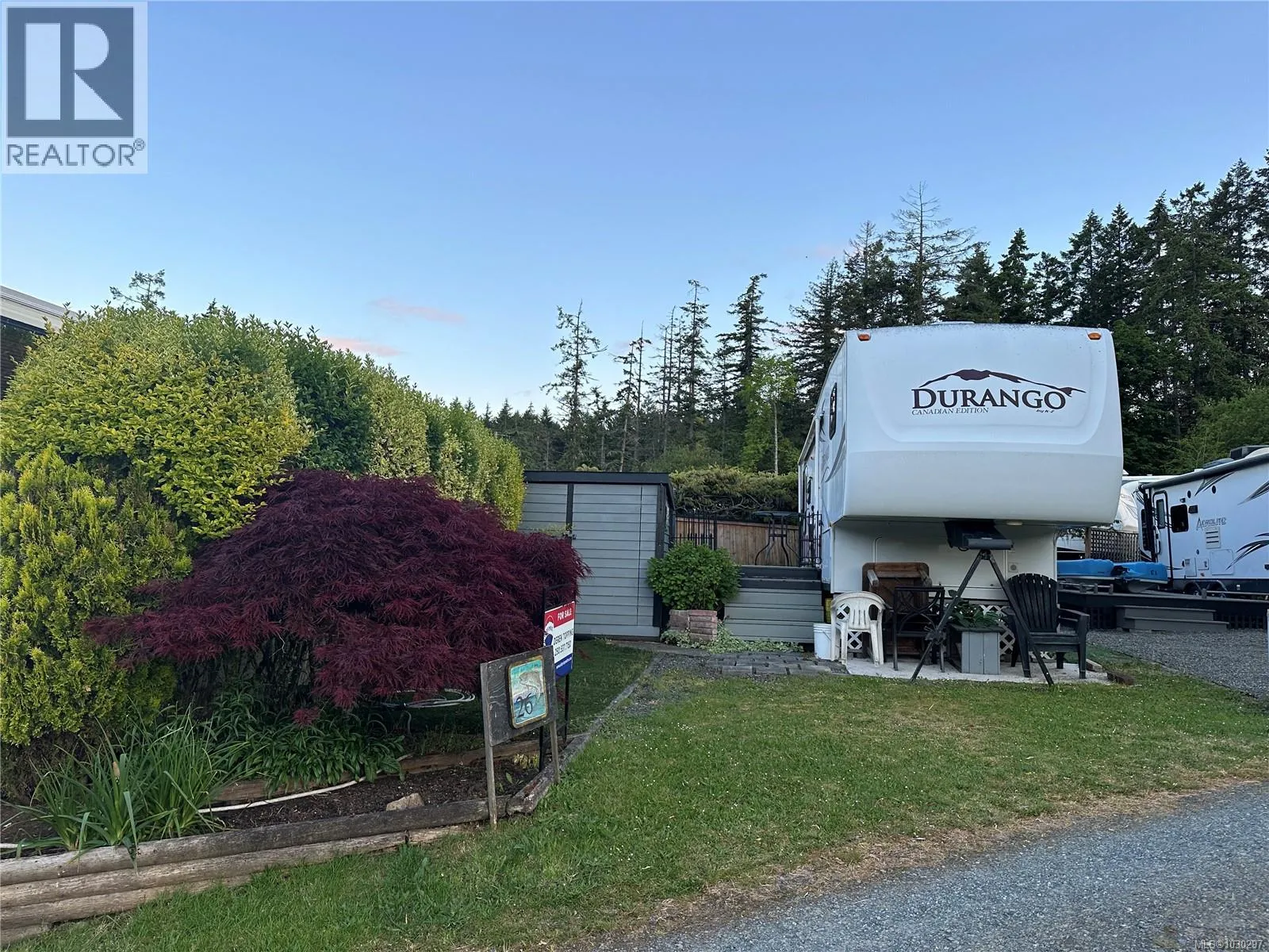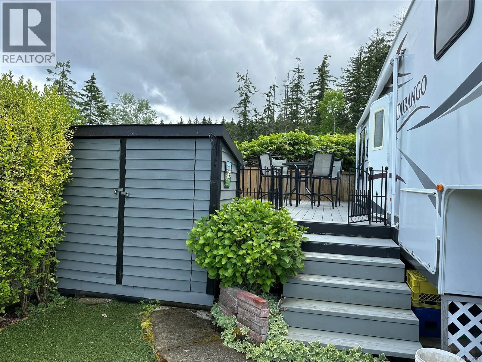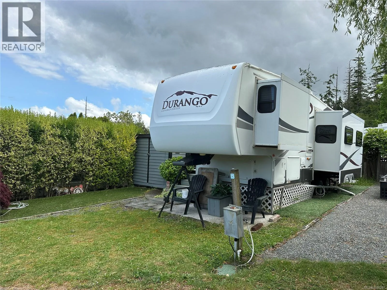 Enjoy effortless lakeside living at Site 26, featuring a 2007 Durango fifth wheel and everything you need to start your recreational escape. This fully equipped site includes a spacious deck, storage shed, BBQ, outdoor dining set, and all camping accessories – just bring your personal belongings! Relax on the deck with direct views of the lake and take advantage of