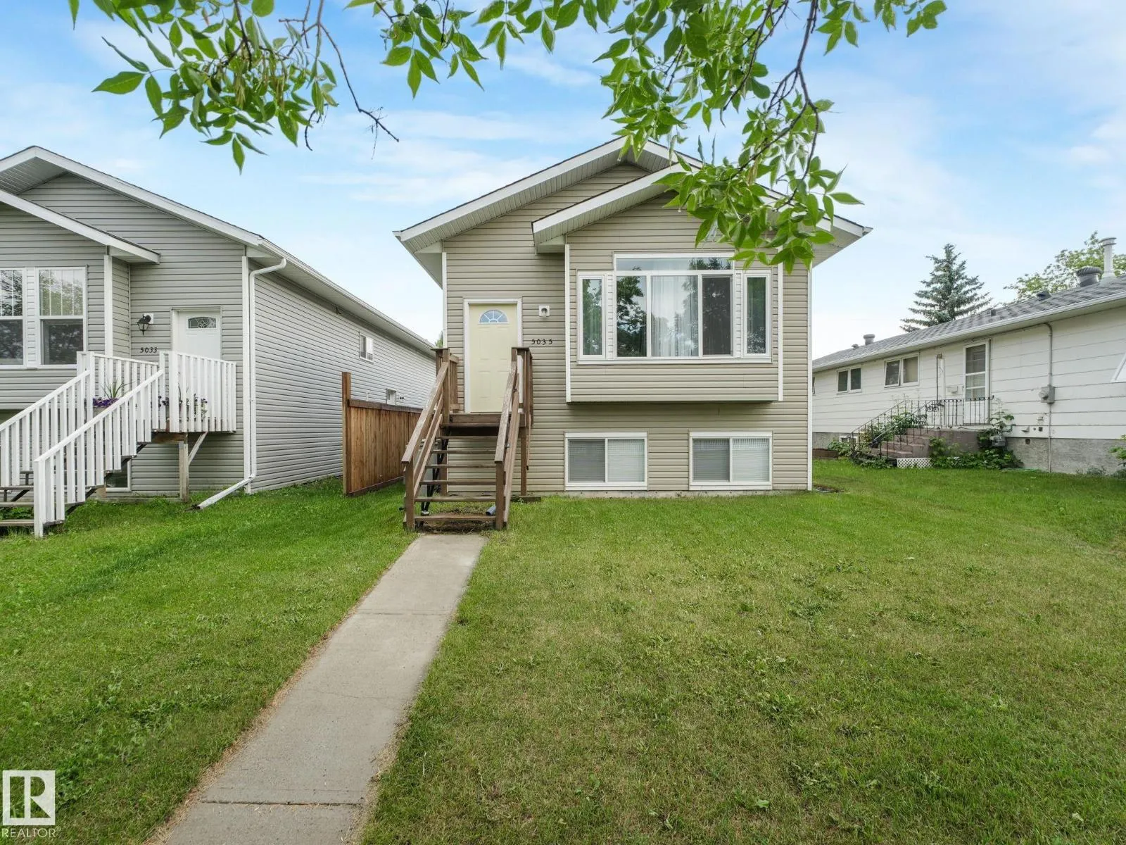 Single Detached Home with back alley access for future garage, Bi Level with oversized windows on the lower level 2 Bedrooms up with 2 full baths . Main Floor features a large living room and dining on laminated flooring, vaulted ceiling , kitchen with lots of cabinet and a stainless steel appliances, closets, main 4 piece washroom, primary bedroom with