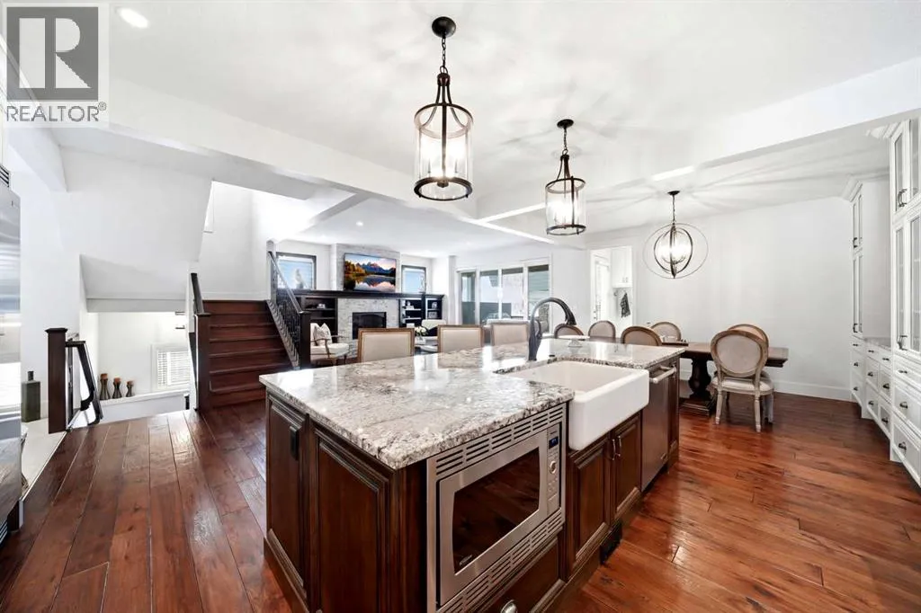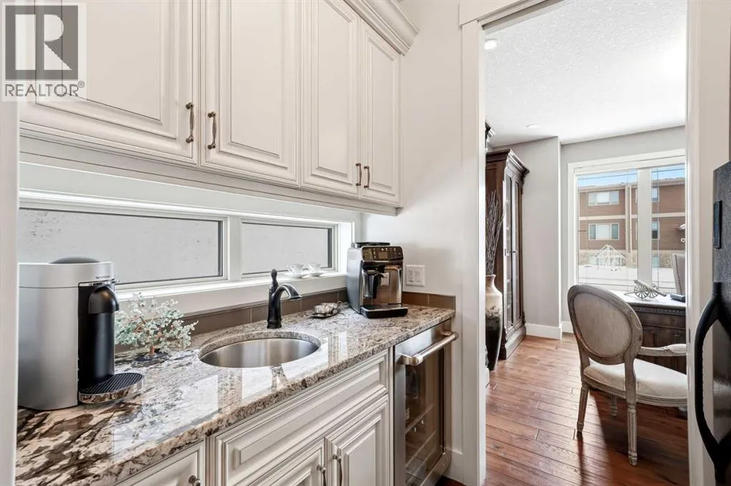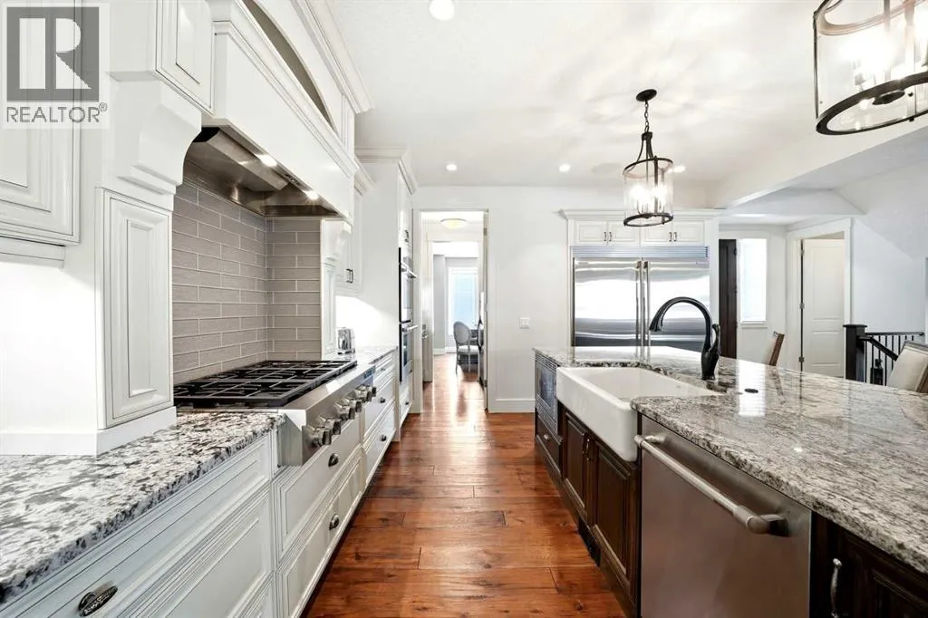 away by the elegance of the main floor with its grand living room with stone-facing fireplace accented by built-in cabinets, open concept formal dining room with built-in hutch & showpiece chef’s kitchen with granite counters, island with cast iron farmhouse sink, butler’s pantry & the stainless steel appliances include an Electrolux fridge/freezer (36” each) & double convection ovens, 36” gas cooktop & wine fridge…ALL FROM JENN-AIR. The hickory floors continue up to the 2nd floor & into the 3 big bedrooms; the private West-facing owners’ retreat has a large walk-in closet & luxurious ensuite with free-standing soaker tub & marble-topped double vanities, glass shower & HEATED FLOORS. Completing this level is the family bath with double sinks & laundry room with chute & LG washer/dryer. A 4th bedroom & full bath are in the beautifully finished lower level, along with a home gym with cork floors, another set of laundry hook-ups & rec room with fireplace & 5.1 surround sound, built-in cabinets & wet bar with 150+ bottle capacity wine room with solid maple racks. Main floor also has a fantastic home office & mudroom with built-in lockers & walk-in closet. Fully fenced & landscaped West backyard with covered deck with fireplace & gas BBQ line, hot tub with pergola & access into the detached 3 car garage…equipped with workbench & built-in cabinets, 220V & roughed-in for electric heater). And the piece-de-resistance is the SELF-CONTAINED & AIR CONDITIONED 832SQFT 1 BEDROOM LEGAL GARAGE SUITE – with its own separate furnace & hot water tank, onsite ha rdwood floors & quartz counters, living room with fireplace & balcony, maple kitchen with stainless steel appliances (including a new GE dishwasher in 2024) & full bath with adjoining laundry. Additional features of this truly incredible home include HUNTER DOUGLAS blinds & built-in speakers (interior & exterior), new Rinnai tankless water heater (2025), irrigation, 2 vacuflo systems (main house & garage/suite), closet organizers & solid core doors, 6” baseboards, Kohler toilets, triple-pane LUX windows, 9ft ceilings throughout & upgraded insulation. As one of Northwest Calgary’s most desirable & walkable inner-city neighbourhoods, Bridgeland is home to popular parks & schools, trendy restaurants & cafes, boutiques & just minutes to St. Patrick’s Island & the zoo, LRT, the Bow River & downtown. (id:62650)