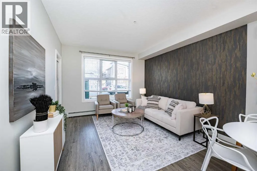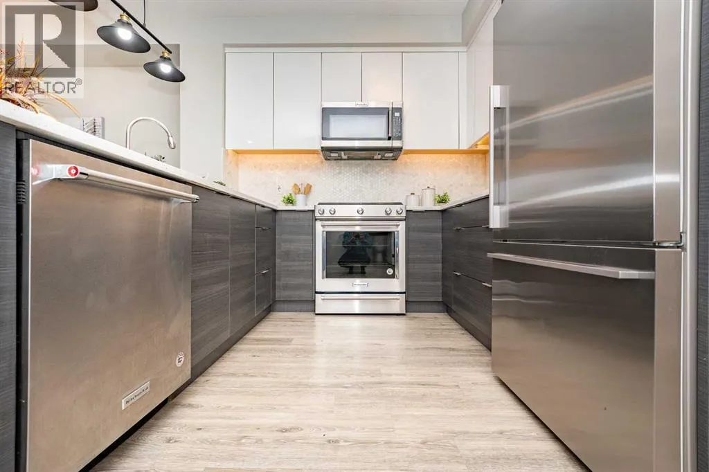SHOWHOME for sale! Looking for a move-in ready home with premium upgrades? This might be the one. Welcome to the Axessbuilding, located in the heart of the historic Currie Barracks community! This beautifully upgraded 1-bedroom ground-floor unit features 9-footceilings, luxury vinyl plank flooring, and a private patio with direct access to landscaped green space—perfect for morning coffee or eveningrelaxation. The