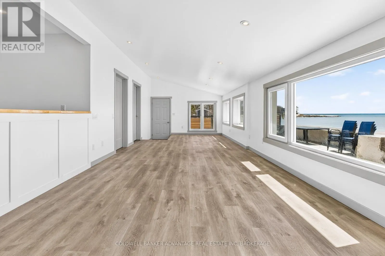 LAKE ERIE BEAUTY! Gorgeous fully renovated 4-bedroom, 2-bathroom lakefront bungalow offering stunning water views and direct access to a beautiful sandy beach. Bright, open-concept living spaces with large windows, updated kitchen, and plenty of room for family and guests. Main bathroom and adjacent bedroom boast accessibility features including wider doorways, lower light switches, and barrier-free shower and vanity access,