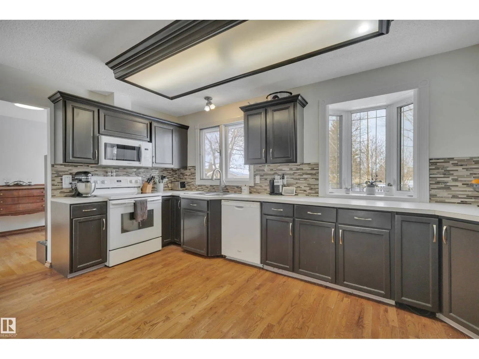 This bright and modern 1 and a Half Storey home in South Park is perfectly situated on a large, landscaped lot backing onto a park. The functional layout is highlighted by a spacious living room with a large bow window and oak kitchen. The main floor offers a sunken family room with a brick fireplace and double garden doors, alongside