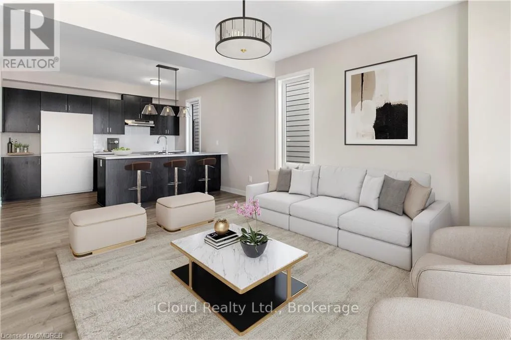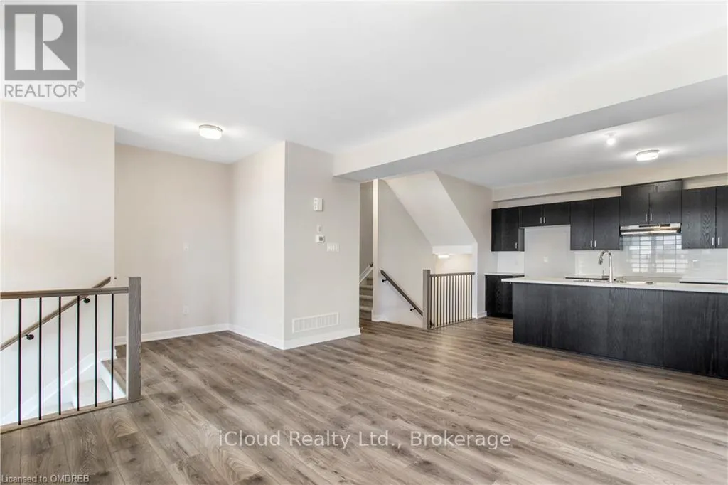 This beautiful 2 story End Unit townhouse has over 1600 sq ft of finished living space. 3 Bedrooms, 3 bathrooms, a stunning kitchen, a huge great room and study nook, a completely finished basement and private 2 car driveway. It features an open plan living room, dining area and kitchen with an island at it centre. The main floor consists