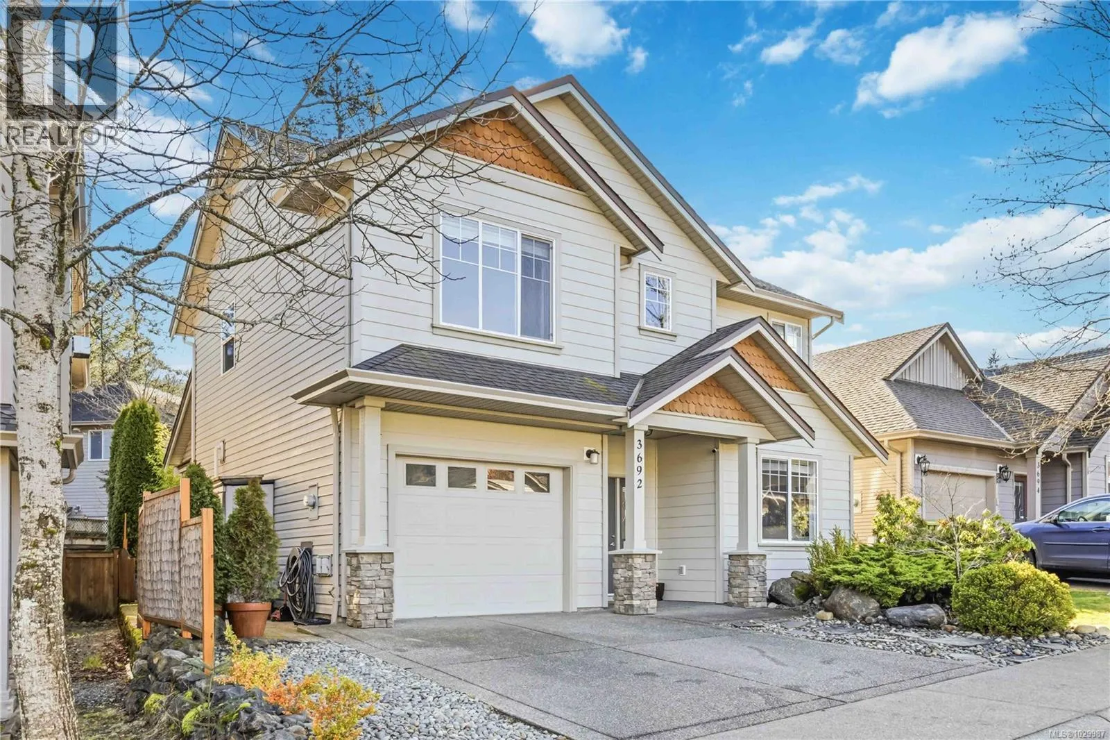 Welcome to this beautifully maintained home in a sought-after Happy Valley neighbourhood, perfect for young families or first-time buyers. Offering 3 bedrooms + den and 3 bathrooms, this home features a bright open-concept main floor with vaulted ceilings, cozy gas fireplace, and a well-appointed kitchen with lovely countertops, stainless steel appliances, and great flow for everyday living. The dining area