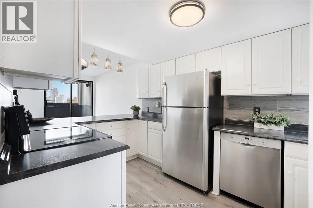 **RARE FIND** THIS EXECUTIVE, NORTH-FACING 2 STORY CONDO IS A VERY RARE FIND, BOASTING STUNNING VIEWS OF THE WATER AND AN IMPRESSIVE PANORAMA OF BOTH WINDSOR AND DETROIT SKYLINES. FEATURING 2 SPACIOUS BEDROOMS AND 2 BATHROOMS, INCLUDING A CONVENIENT MAIN FLOOR POWDER ROOM, THIS HOME COMBINES LUXURY WITH FUNCTIONALITY. THE LARGE OPEN-CONCEPT LIVING AND DINING AREA IS FLOODED WITH NATURAL