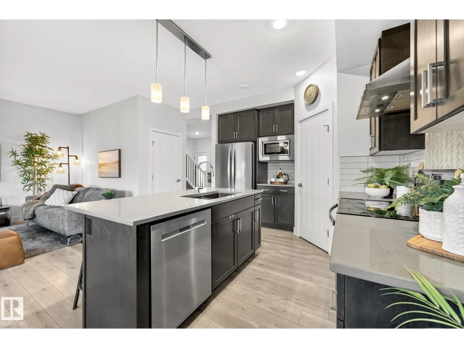 Stylish, FULLY FINISHED, and move-in ready in the vibrant community of Desrochers, find the perfect blend of everyday comfort & modern style! This upgraded 2-storey offers a bright and airy open-concept main floor with wide-plank flooring, a striking wood-slat feature wall, & a modern kitchen featuring QUARTZ COUNTERS, stainless steel appliances, espresso cabinets, corner pantry, & a large island built