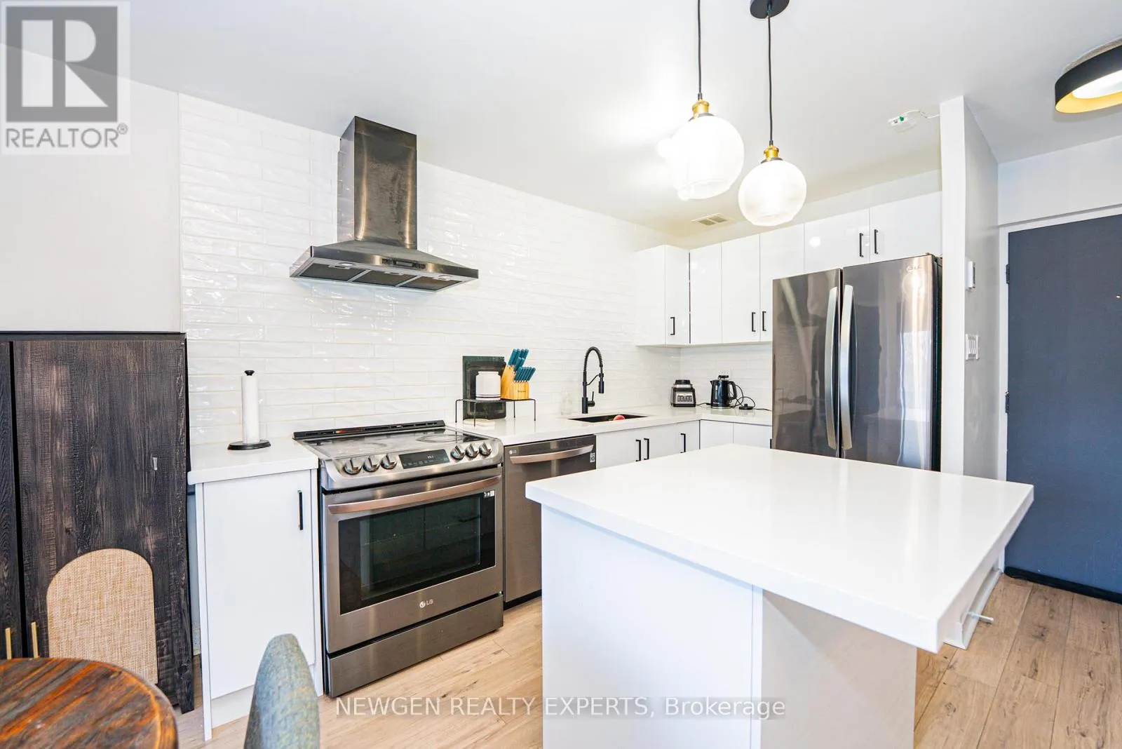Professionally designed and fully renovated from top to bottom, this stunning two-storey suite is located in the highly sought-after Clarkson neighbourhood. Featuring a modern open-concept kitchen with a spacious island, stone countertops, black stainless steel appliances, and an artisan tile backsplash-perfect for both everyday living and entertaining. Enjoy seamless indoor-outdoor living with two large private balconies. The suite also boasts
