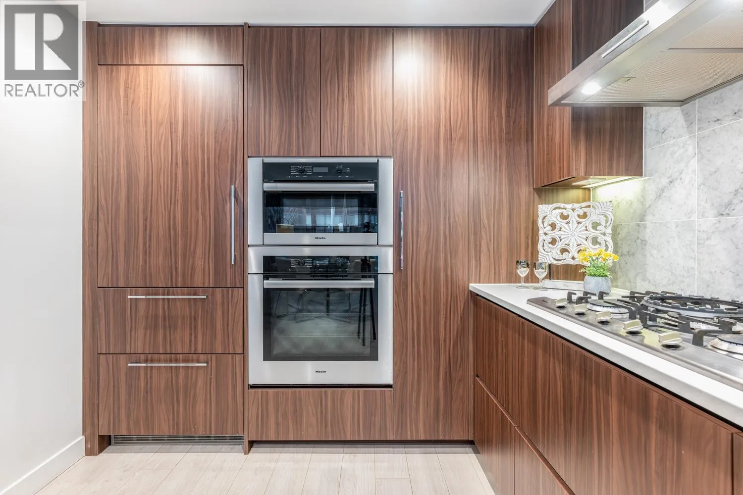 Welcome to the luxury living in False Creek with famous developer Concord Pacific – Ave One! This brand new spacious SOUTH facing 2 bedroom with 2.5 bathroom plus den townhouse is a master piece. Open concept floor plan with a gourmet Miele kitchen, Miele S/S appliances, big cooktop, integrated fridge and double oven. South facing living room and bedrooms give