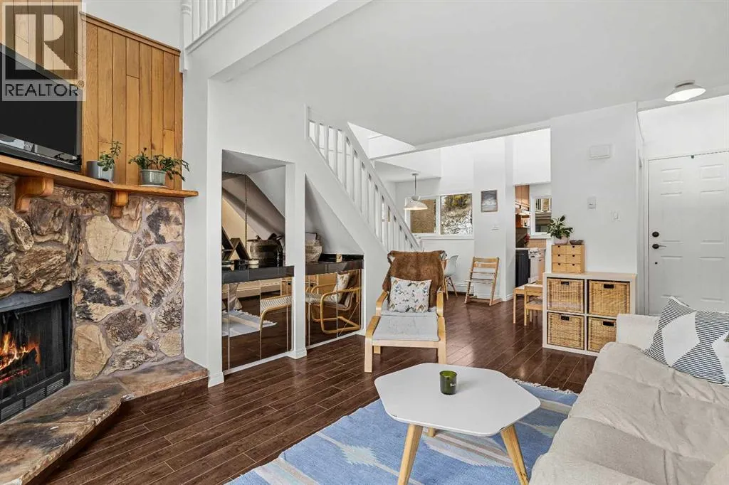 Just steps from the Bow River, endless trails & the singular mountain town aura that Canmore brings, you’ll find this top level, 2 bed & loft townhouse. On entry, the views are immediately apparent, with a direct line-of-sight to the emblematic Three Sisters mountains. Anchored by a feature fireplace, the main living area is a calming refuge, where high ceilings