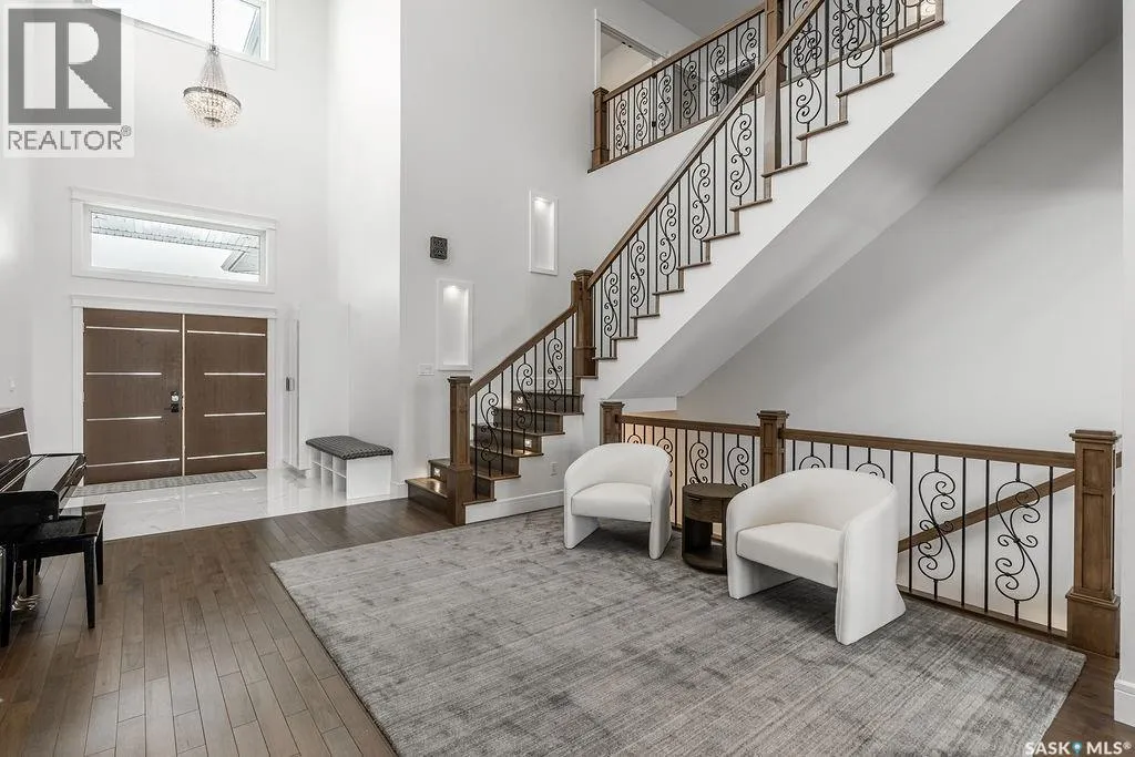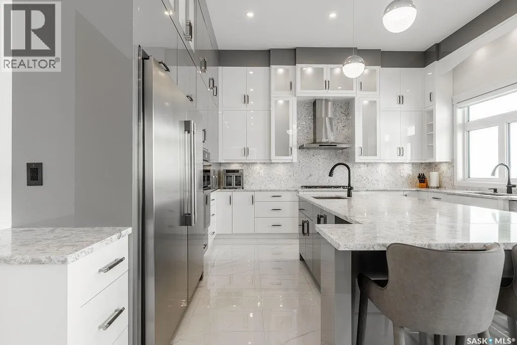 Timeless luxury, an incredible floor plan, and breathtaking views-welcome to 623 Kenaschuk Crescent. This impressive 3,067 sqft walk-out two-storey home has been custom built with exceptional finishes inside and out, and it comes fully furnished for a true turnkey opportunity. The grand 2-storey foyer makes an unforgettable first impression with soaring 22ft ceilings, a stunning chandelier, and an elegant sweeping