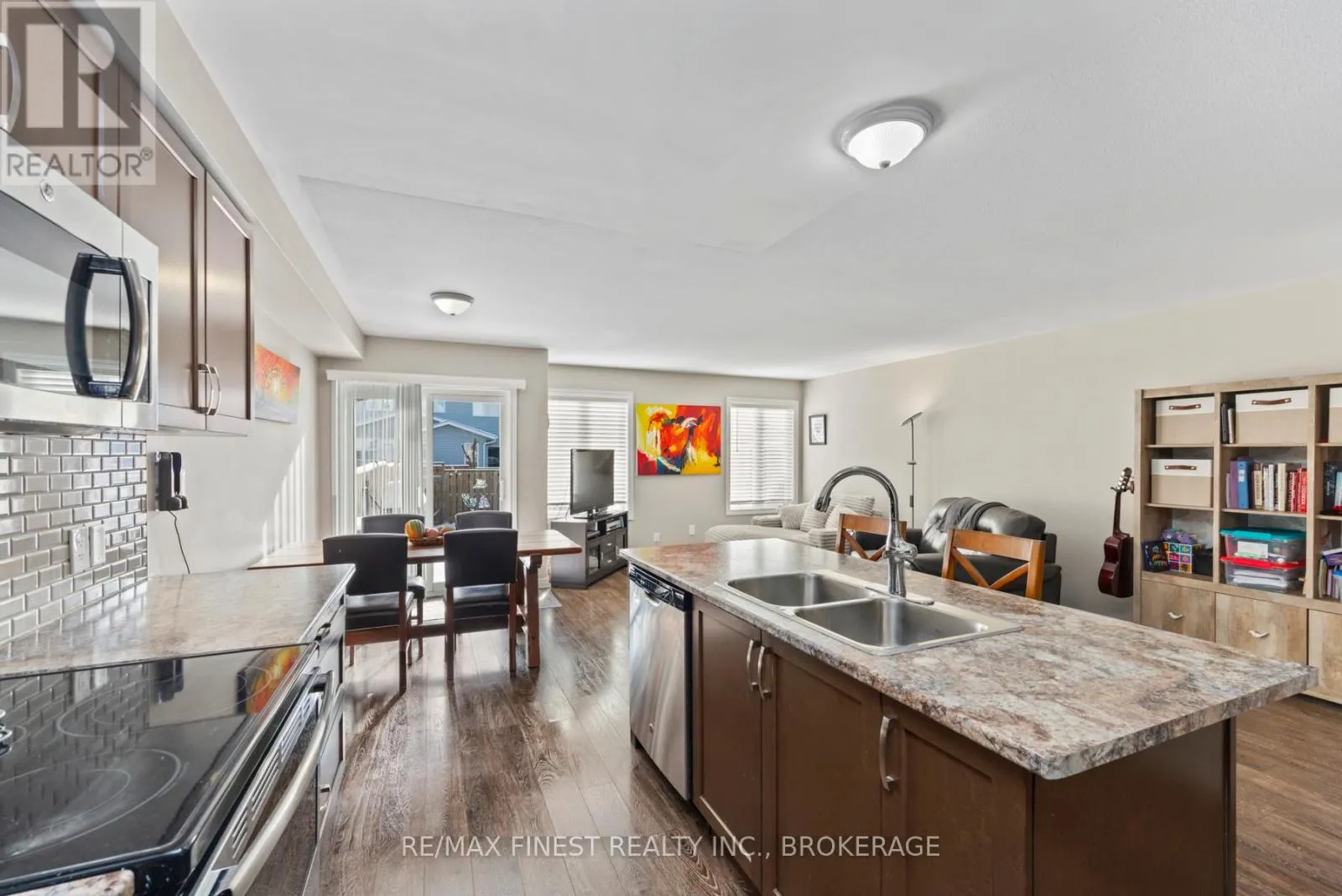 Welcome to this well looked after 10 year old townhouse offering 1,520 sq/ft, 3 large bedrooms,2.5 baths. Featuring a large sunken foyer and powder room with ceramic tile. Open concept design, bright living, kitchen and dining area. Gorgeous maple kitchen featuring large center island with extended breakfast bar, pots & pans drawers, tile backsplash and stainless steel appliances. The dining