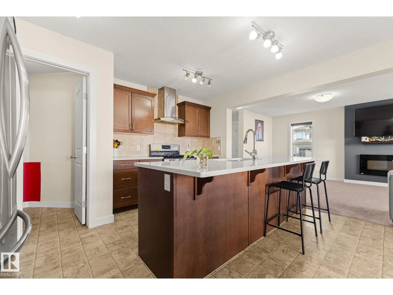 Tucked away in a quiet cul-de-sac in the desirable community of Maple Crest, this meticulously maintained 2-storey home offers OVER 2300 SQ FT of well-designed living space with 9 ft ceilings, tons of natural light, and central A/C for year-round comfort. The massive living room features a striking electric fireplace feature wall and flows into the open-concept kitchen with quartz