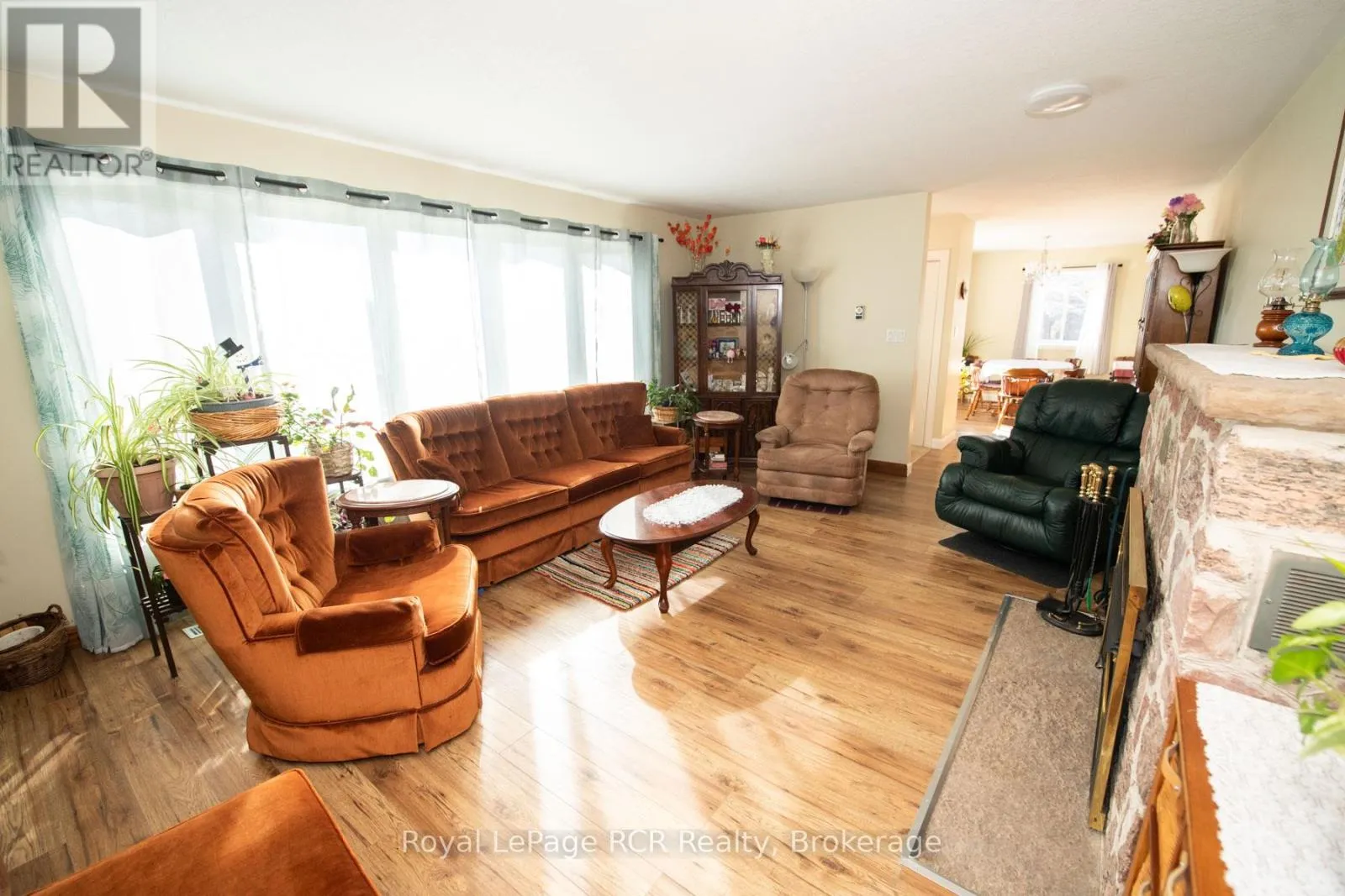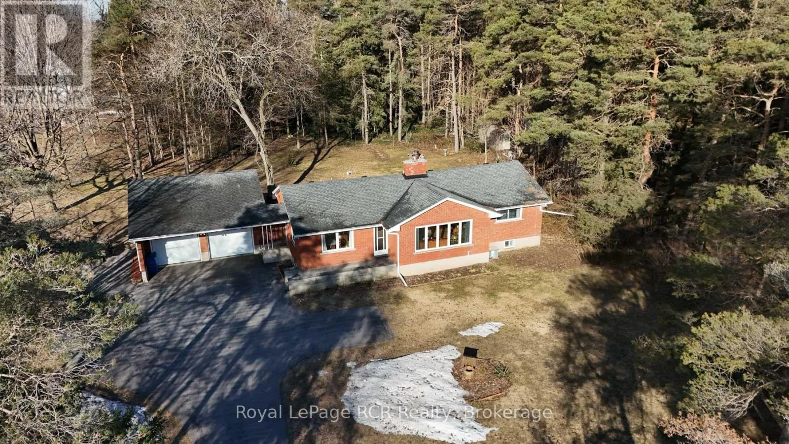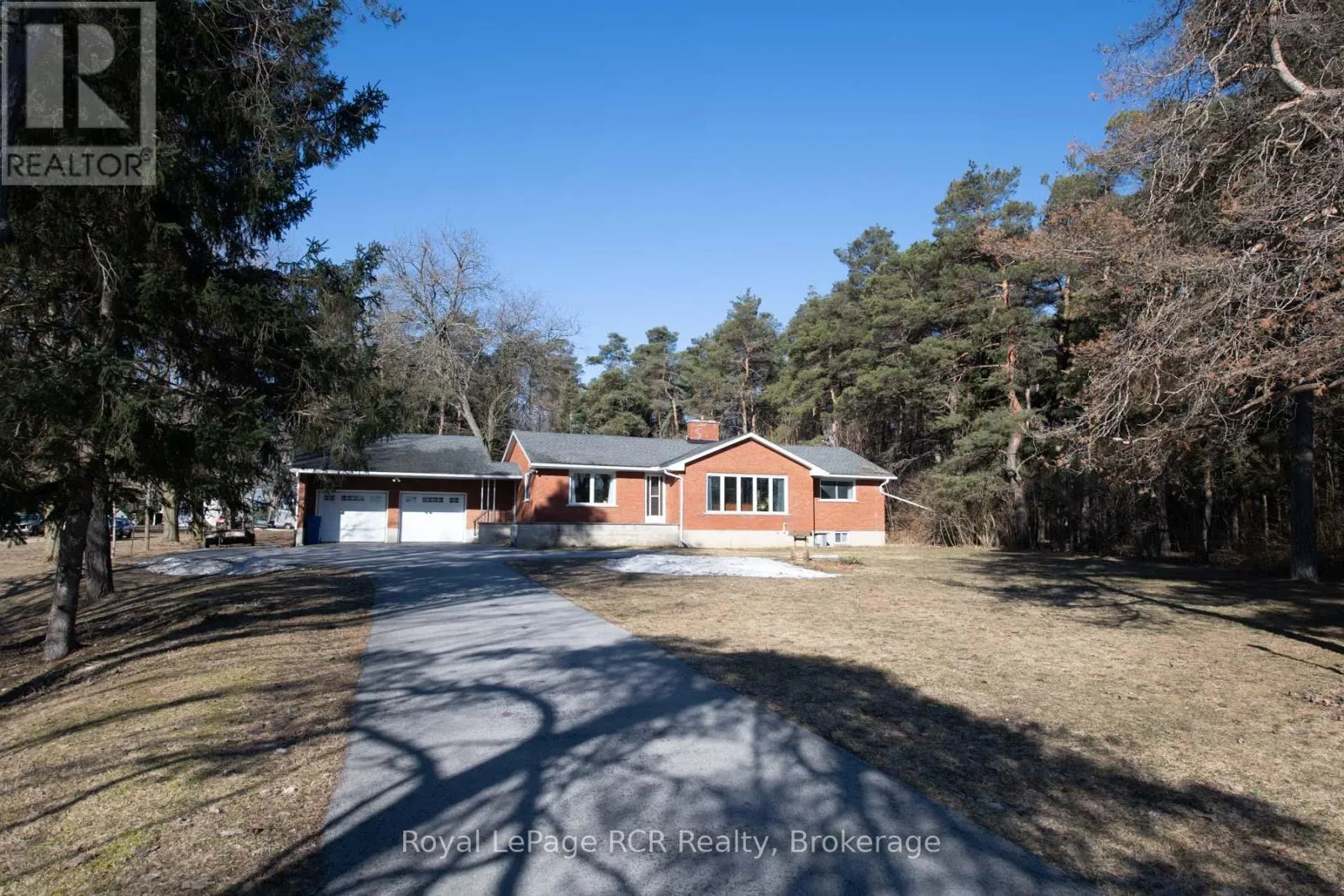 just what you been waiting for, brick bungalow with heated 2 car garage on 2.2 acres in a natural trees setting , kitchen and dining spacious living room ,gas fireplace, 2 bedrooms. 2pc ensuite , 4pc bath, study with door to rear yard and deck, basement has laundry , 3pc bath, common room and office and workshop area and