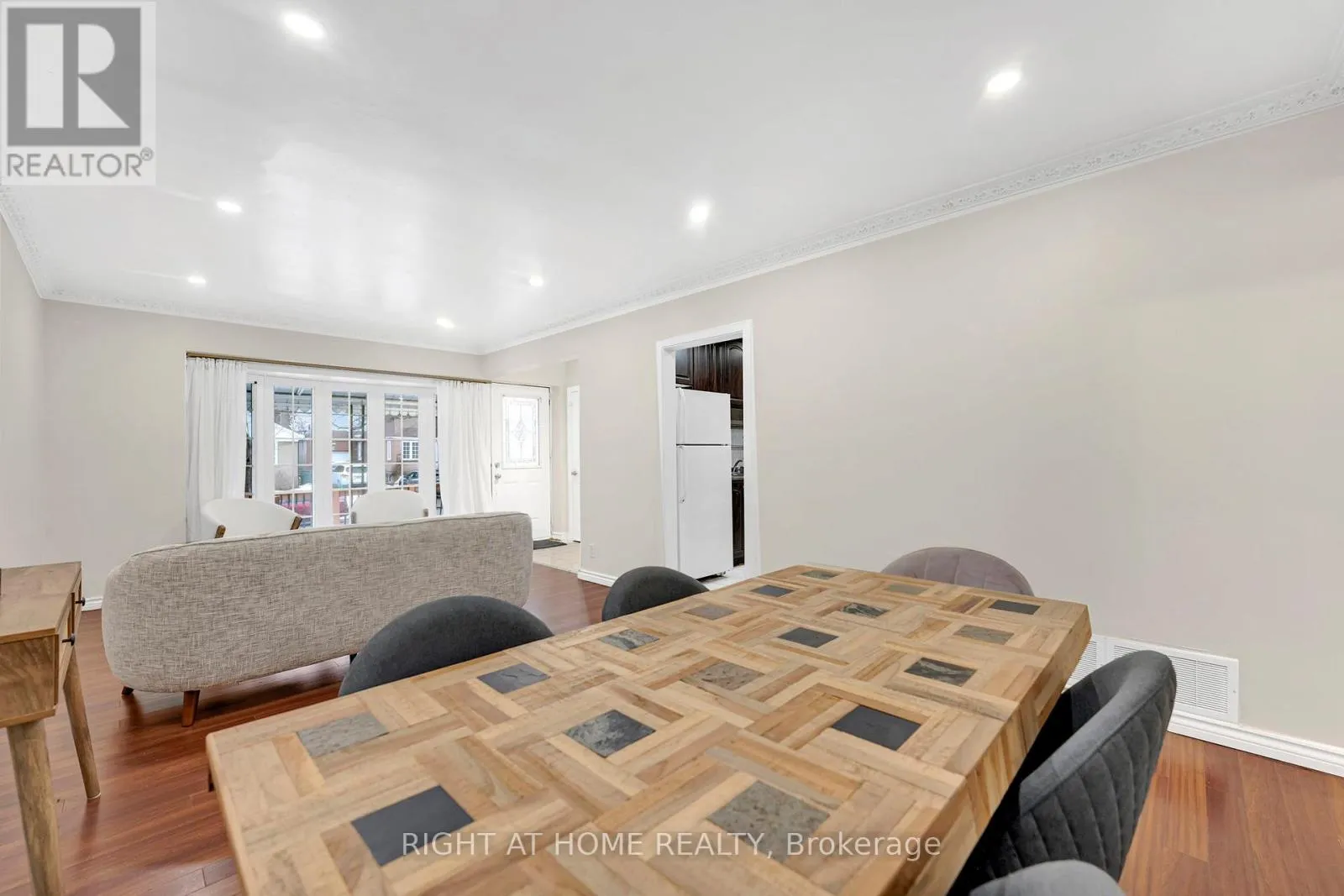 Welcome to 5 Hollingworth Drive, a detached brick bungalow on a 45 x 111 ft lot in the heart of Dorset Park, Scarborough. The main floor offers three bedrooms with laminate flooring throughout, a combined living and dining area with crown moulding, pot lights, and a large bow window, along with a kitchen featuring stainless steel appliances and ceramic flooring.
