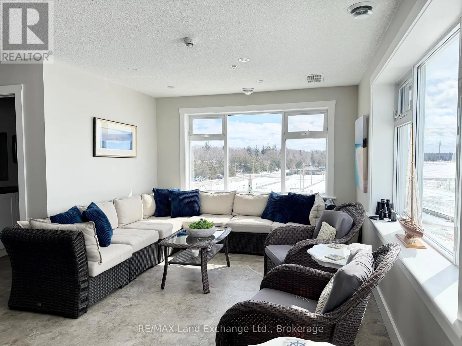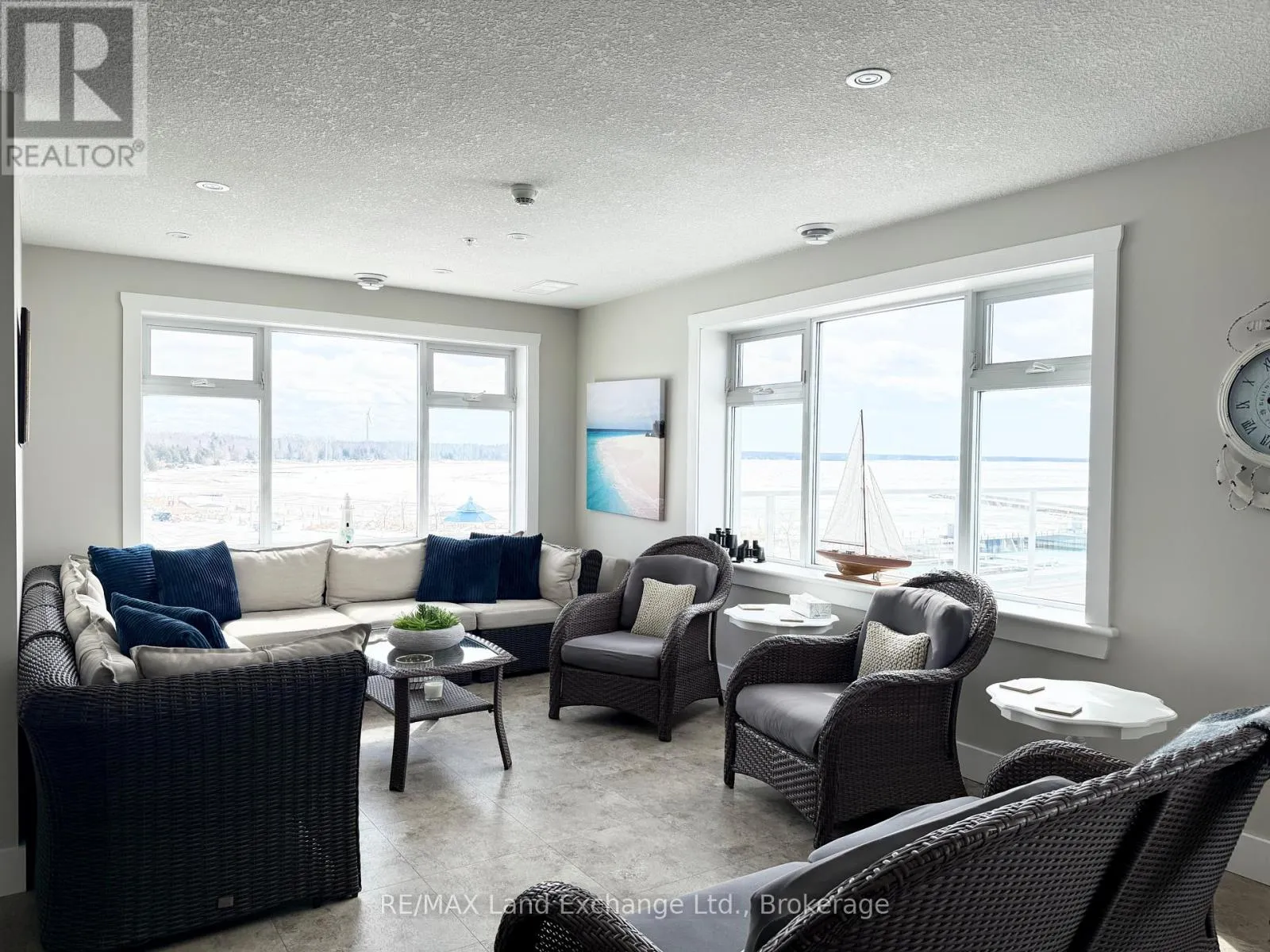 Elevated waterfront living in the heart of Port Elgin. Welcome to Unit 203 at 137 Elgin Street-an exceptional 2-bedroom, 2-bathroom condo offering refined, low-maintenance living just steps from the shoreline. This south-facing suite features a bright, open-concept design with a stylish kitchen, dining area, and elegant living room anchored by a gas fireplace. Walk out to your private balcony overlooking