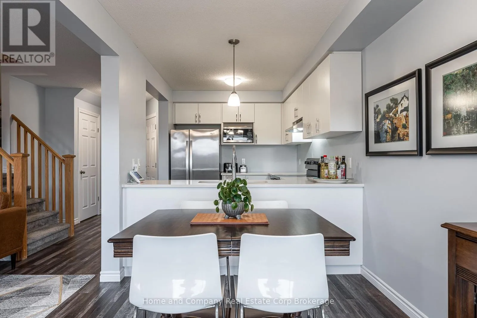Immaculate freehold townhouse built in 2022, offering modern finishes and a functional open-concept layout. The main floor features a bright living and dining area with large windows and a walkout to a fully fenced backyard-perfect for entertaining or relaxing and a convenient two-piece powder room. The kitchen is both stylish and practical, showcasing quartz countertops, included stainless steel appliances, and