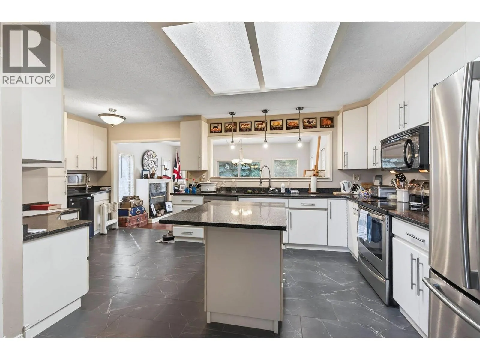 Nice family home on large Westsyde lot. Fully finished with 2 bedrooms up and 2 down, 2 baths up and 1 down. Comfortable living room with lots of light, cove moulding, kitchen with lots of cupboards, island, quartz countertops, bar sink and beverage fridge, dining room with slider out to two level deck. Family room down with gas fireplace, wet