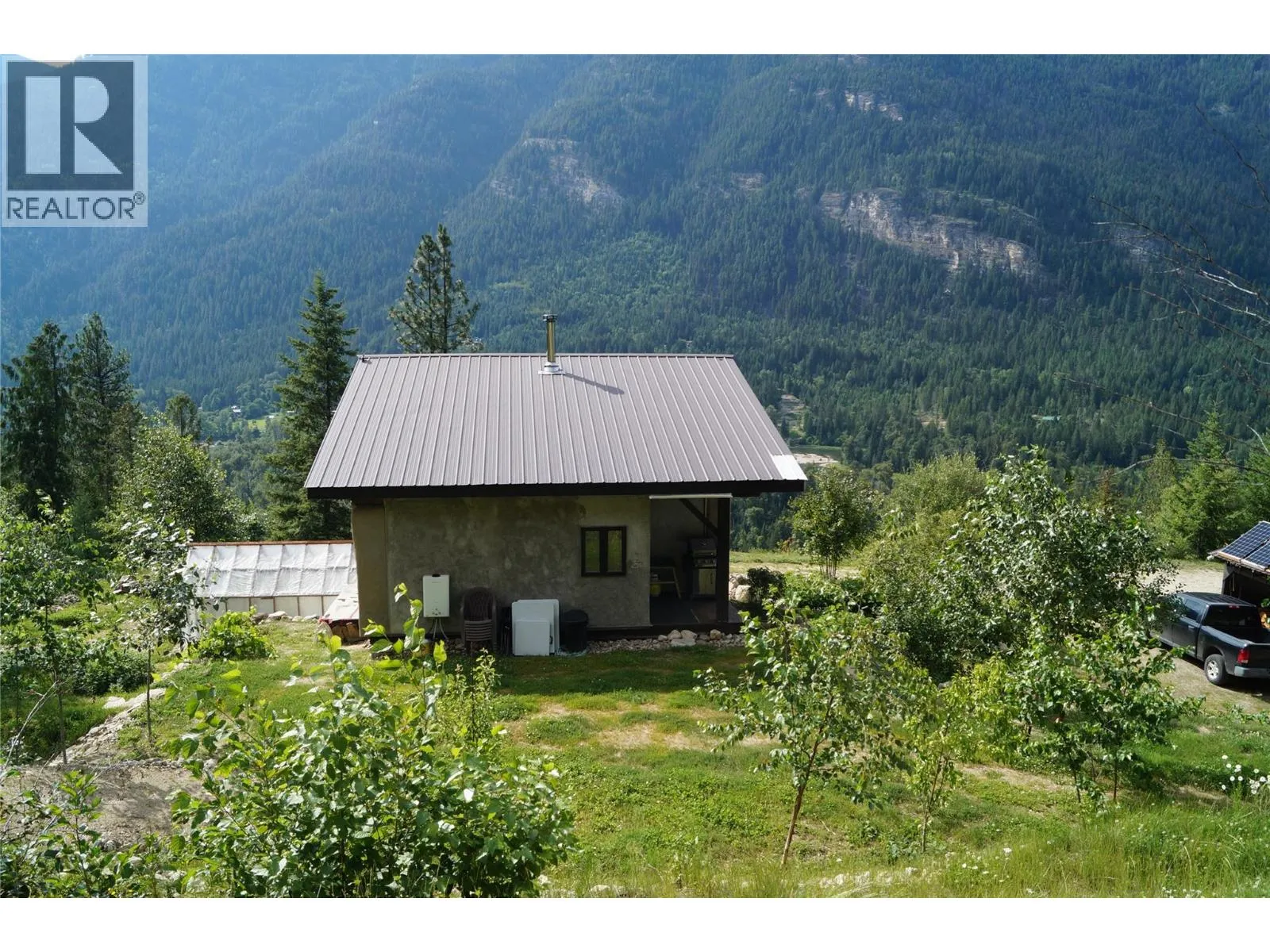 A quarter share of 78.78 acres made affordable through a co-operative share structure. The title, covering only four exclusive lots, is owned by Slocan 4566 Co-operative Association (CP-0002012). Purchasing this share grants you exclusive use of Housing Site 4 and 1.5 acres of a cleared bench of land and buildings. This unique off-grid homestead built in 2007, offers a