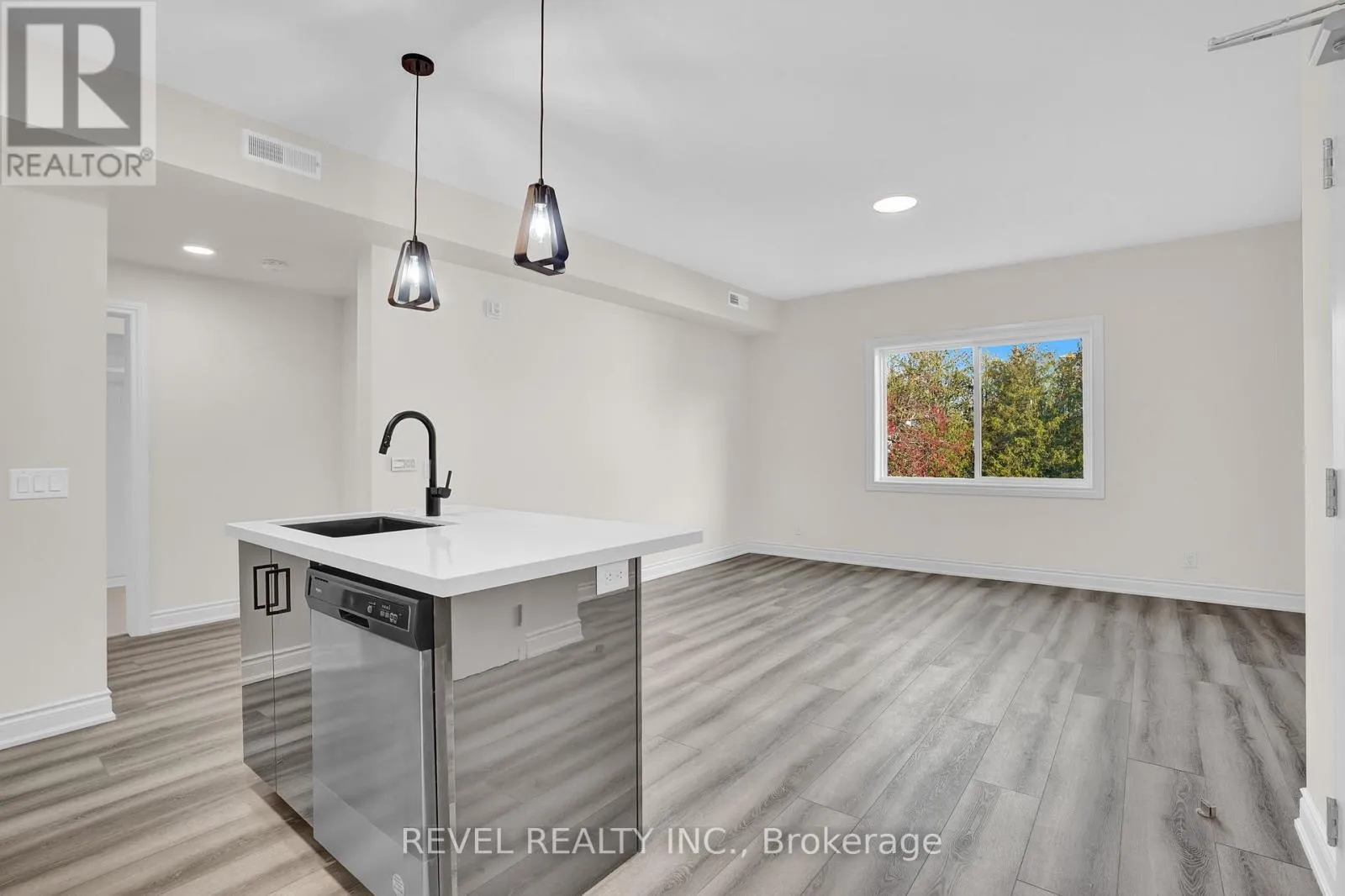 Modern 2-bedroom, 1-bath condo in a newer building at 261 King St E #2D. Featuring an open-concept layout with laminate flooring throughout, a sleek kitchen with stainless steel appliances, quartz countertops, and a centre island, plus in-suite laundry. Two well-sized bedrooms ideal for living and working from home. Enjoy building amenities including BBQ area, bike storage, and visitor parking. Convenient