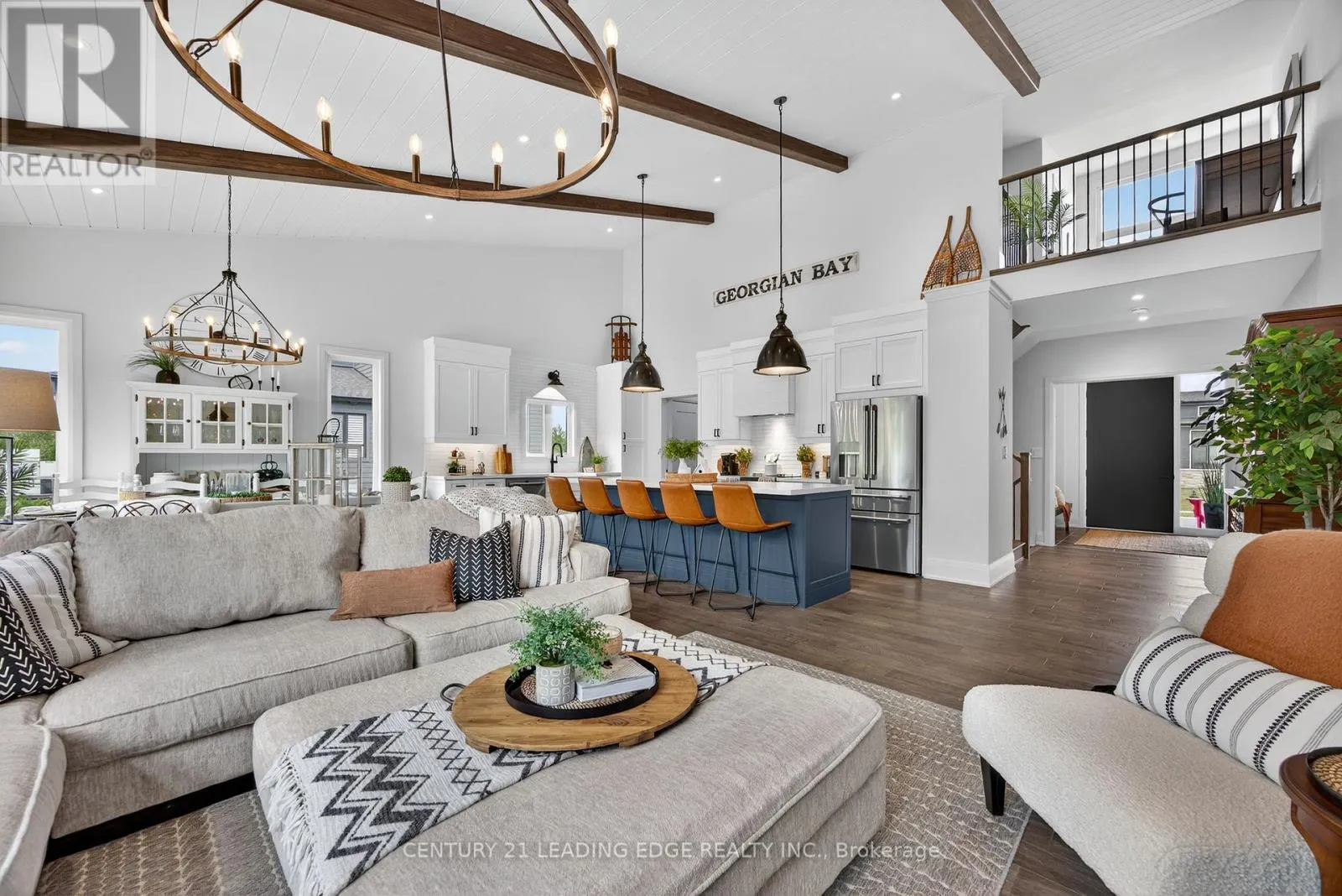Welcome to 108 Goldie Court, a perfect home for your 4-season lifestyle! Meticulously upgraded, this open concept Alta model (2,375sqft) will not disappoint! A large inviting foyer to greet guests leads to a show-stopping great room with vaulted shiplap ceiling featuring 3 beams, Restoration Hardware island pendant lights, pot lights, hardwood floors, 41″ gas fireplace and a 12′ by 8′
