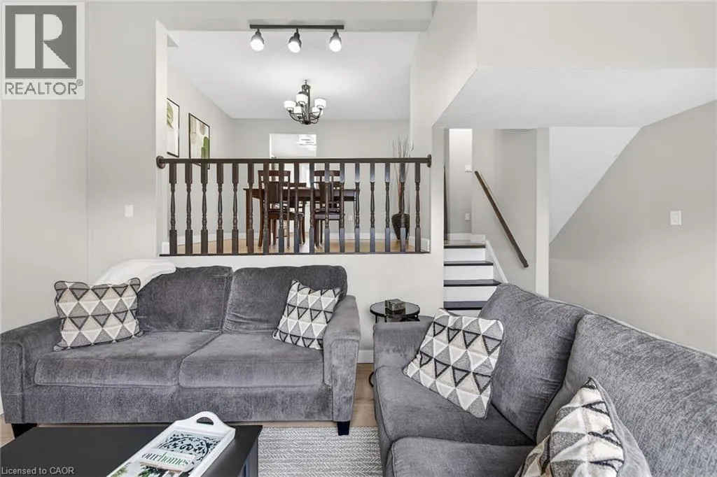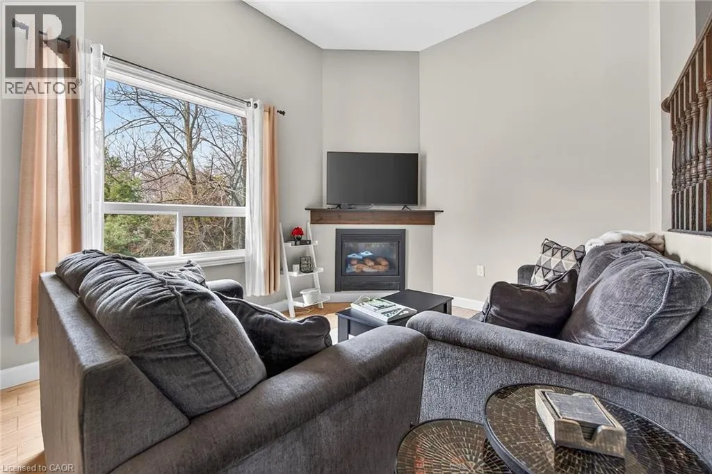 Rarely offered multi-level townhouse at the base of the Escarpment in downtown Stoney Creek. Impressive and bright main floor space with a high vaulted ceiling and gas fireplace. Updated kitchen and appliances with extended eat-in area. Upper level with large primary bedroom and updated bathroom. Lower level walk-out to private backyard area. Well managed and maintained complex. Located in a