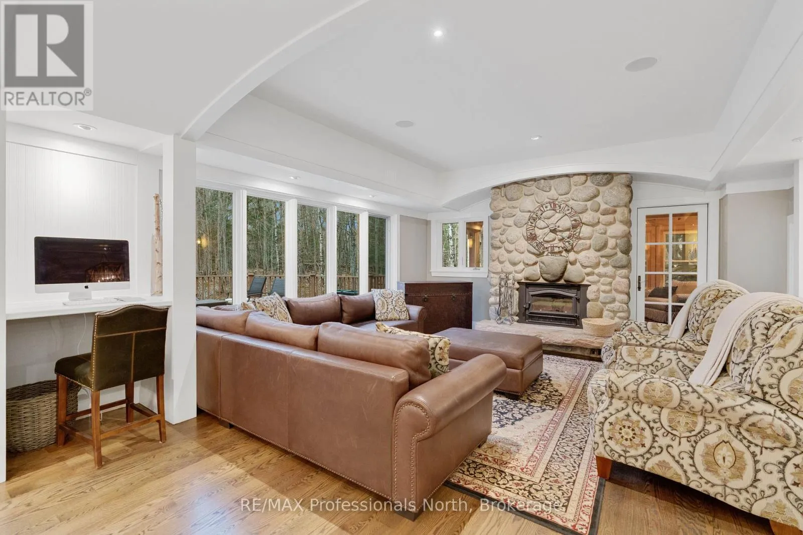 Welcome to an extraordinary private estate in the heart of Muskoka, where refined design meets the natural beauty of the surrounding landscape. Offering over 7000 square feet of thoughtfully crafted living space, this impressive property includes a 1000 square foot heated garage with floor drains and a finished loft above, along with three fully finished levels designed for elevated everyday
