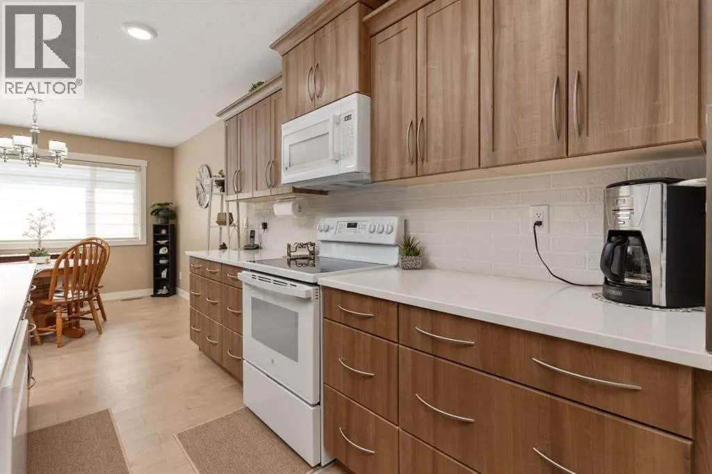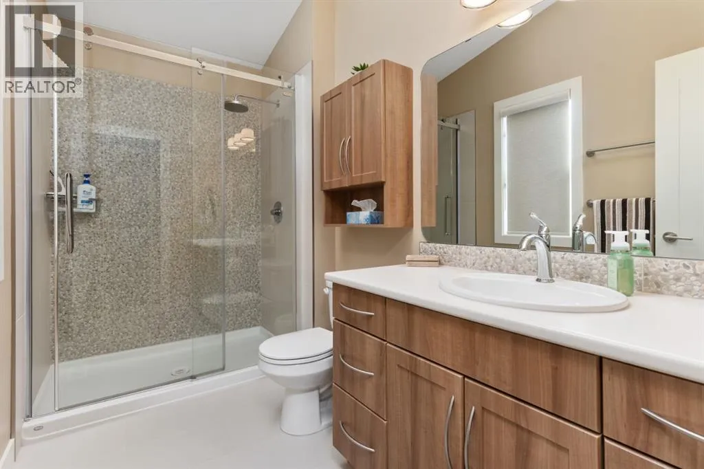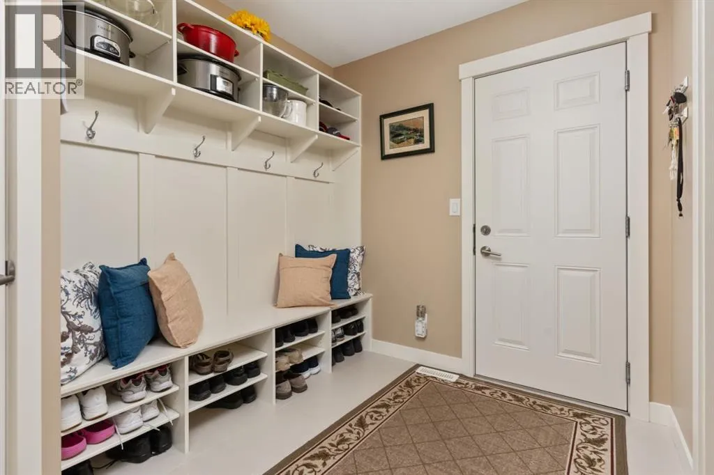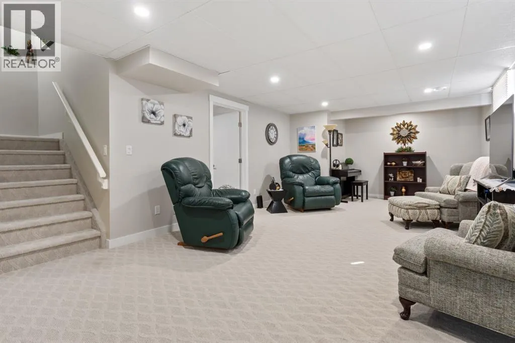 setting where family life truly thrives.Thoughtfully designed for modern living, the home welcomes you with a spacious front entry, while the oversized rear mudroom off the triple attached heated garage is tailored for busy households, complete with built-in cubbies, hooks, and ample storage. The garage itself is a standout, featuring floor drains and generous space for vehicles, hobbies, and more. Outside, the expansive 19×60 RV pad with power offers incredible flexibility, whether for recreational storage or future possibilities like a sport court.Inside, every detail has been carefully considered. Evening ambiance is elevated with both pot lighting and gemstone lighting, creating the perfect setting for entertaining or quiet family nights. Stay comfortable year-round with central A/C throughout. The walk-through pantry seamlessly connects the mudroom to the kitchen, enhancing both flow and function, while a convenient 2-piece powder room completes the main level.At the heart of the home, the bright and open living space is designed to gather and impress. The kitchen showcases a stunning oversized quartz island and abundant workspace, opening into a dining area framed by large windows overlooking the backyard. The inviting living room is filled with natural light, and just off the dining space, a covered composite deck offers an ideal outdoor retreat for relaxing or hosting.Upstairs, you’ll find three well-appointed bedrooms, including a serene primary suite featuring a walk-in closet and a spa-inspired 3-piece ensuite with heated floors and a tiled walk-in shower. A full 4- piece bathroom and convenient upper-level laundry room add everyday ease.The fully finished basement extends your living space with a spacious recreation room, a versatile bedroom or office (no closet), a 3-piece bathroom, and excellent storage options.With its high-end finishes, thoughtful layout, and unbeatable location near the new high school, this Valleyview West home delivers an elevated family lifestyle in one of Camrose’s most desirable neighborhoods. (id:64429)
