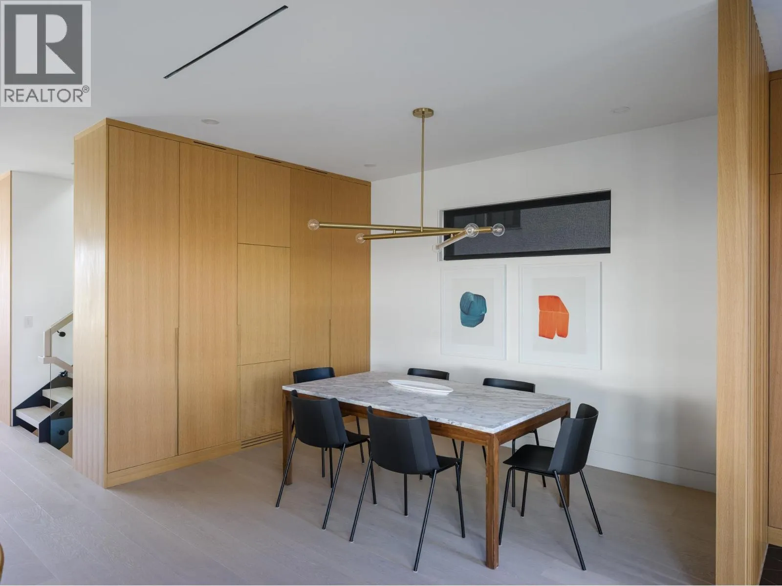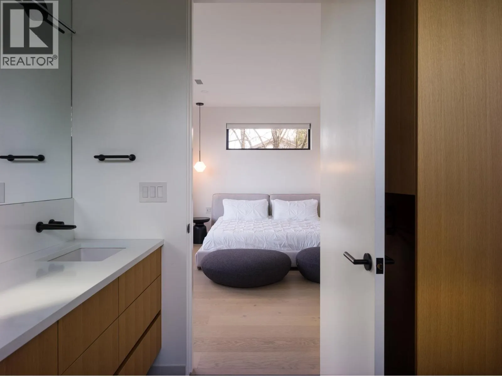 This extraordinary custom built 5-bed home is defined by thoughtful design, craftsmanship & quality. White oak millwork & wide-plank oak flooring set the tone, while frameless windows & skylight invite natural light. The kitchen´s understated elegance is matched by function, feat. a 10.5´ marbled quartz waterfall island, glass window backsplash & high-end appliance package, flowing into a spacious dining area