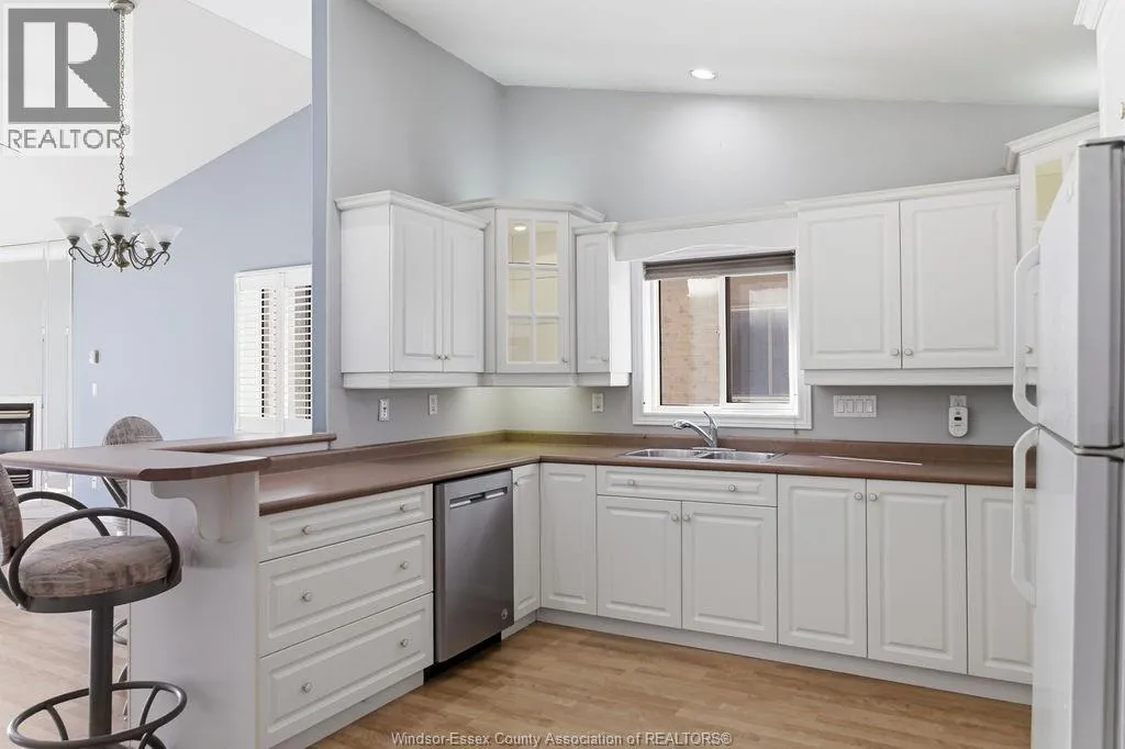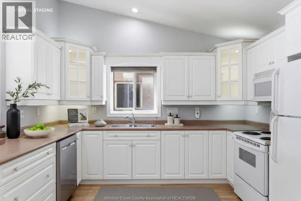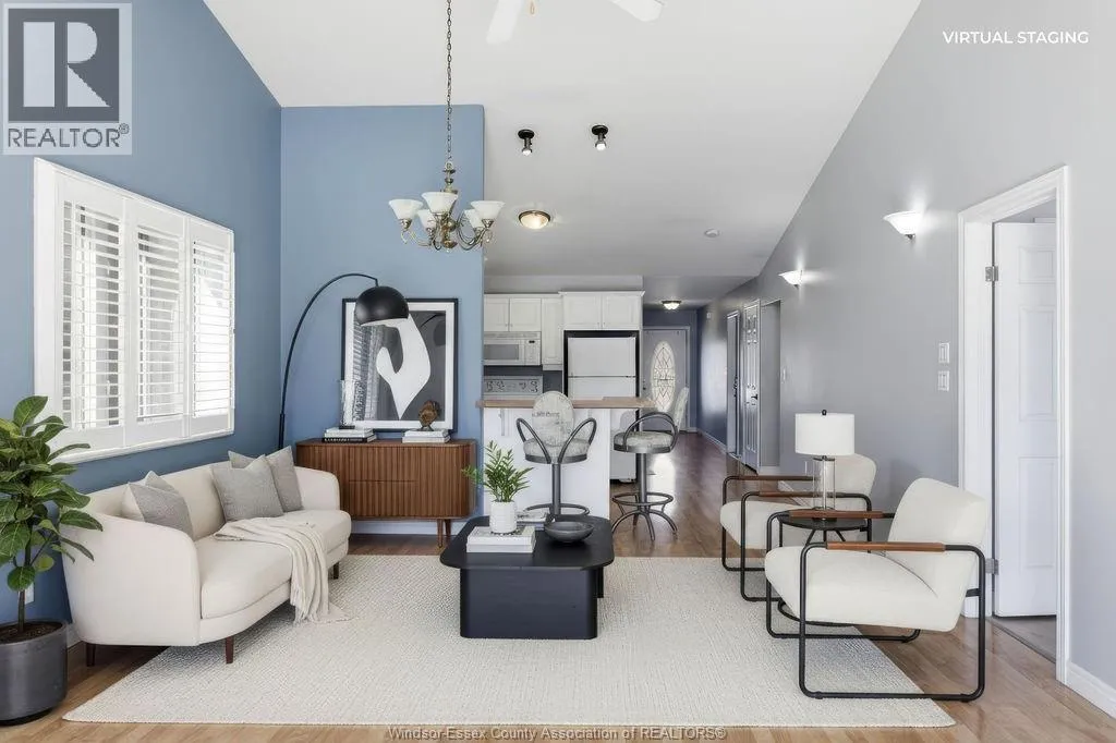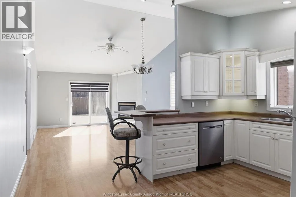 Enjoy maintenance-free living in this beautifully updated East Windsor end-unit townhome offering the rare combination of no rear neighbours and a prime location directly across from Blue Heron Park with scenic lake views and walking trails. Situated in a quiet, highly desirable East Riverside neighbourhood, this home features an open-concept kitchen with island overlooking the living room with gas fireplace,