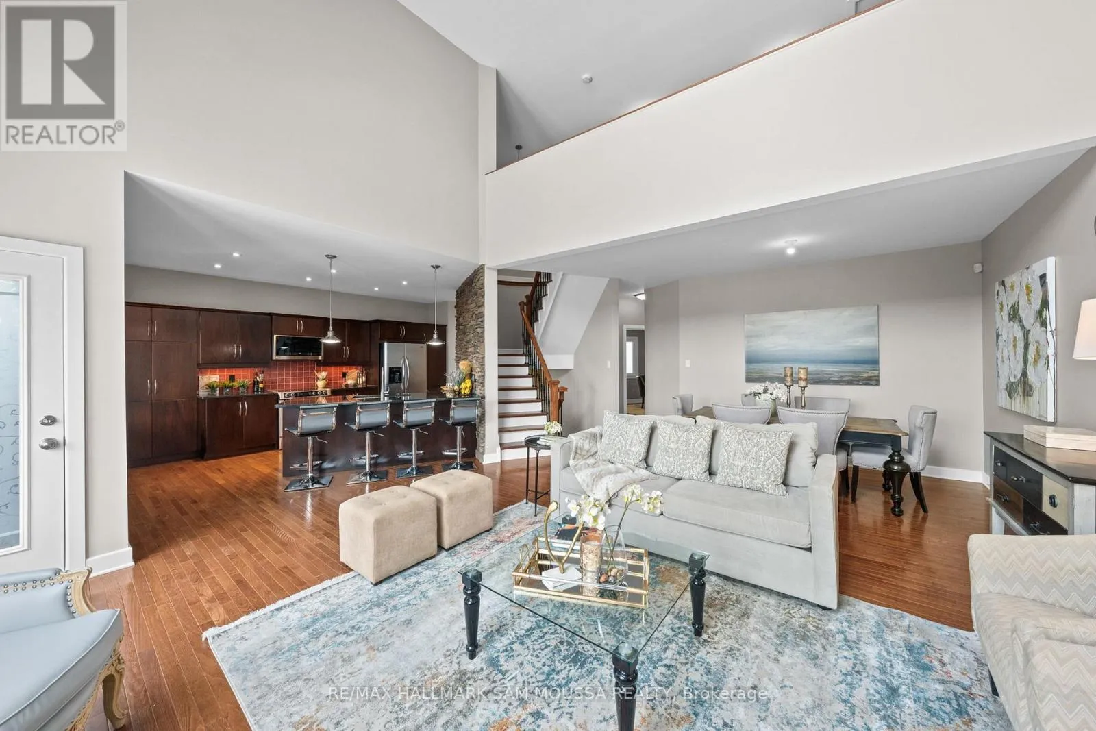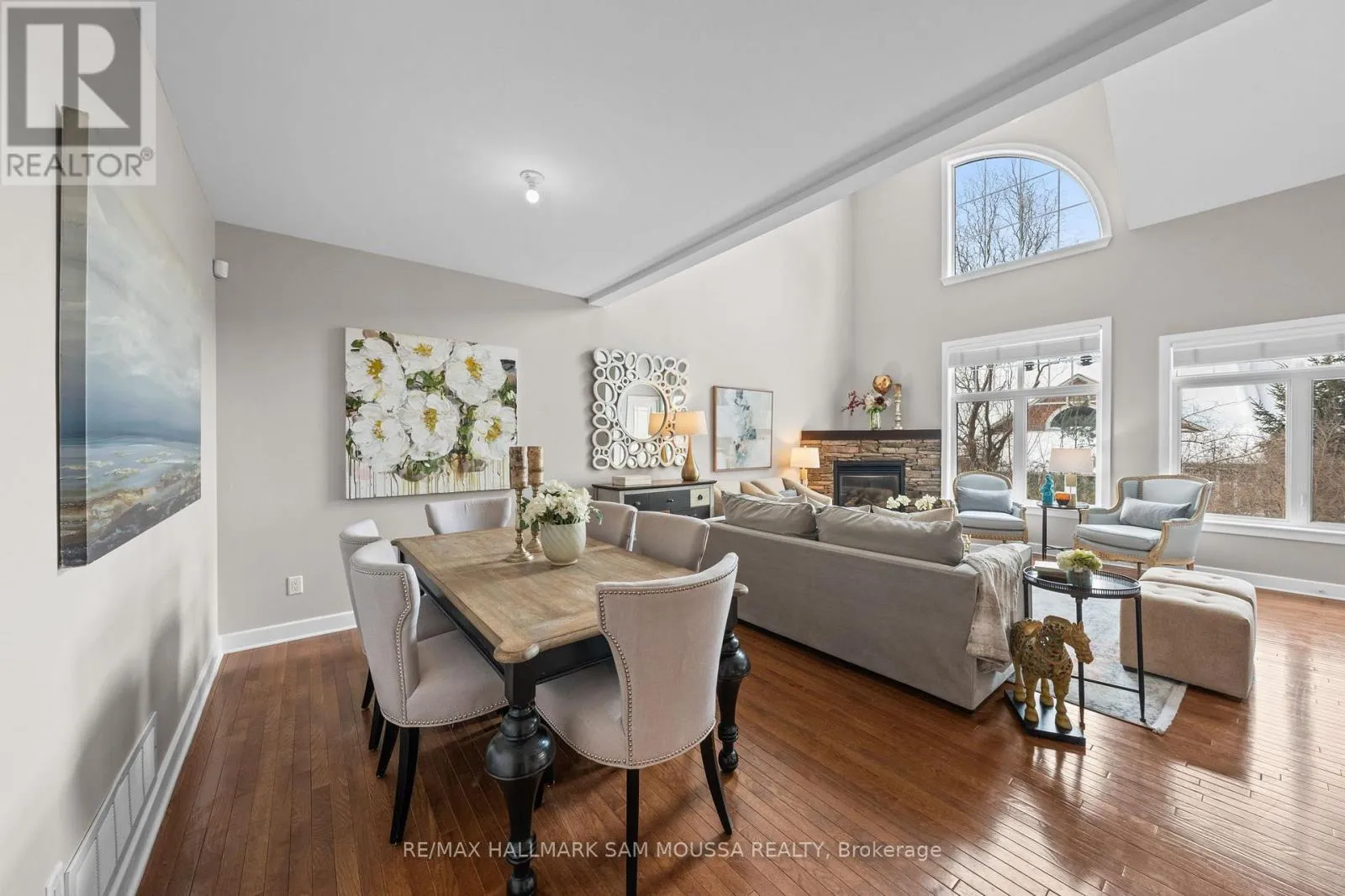 Tucked away in the sought-after enclave of Marshes Village, this beautifully upgraded end-unit townhome offers refined living. Thoughtfully maintained and tastefully enhanced. A foyer with Italian tile sets the tone, opening to open-concept living and dining spaces. Soaring ceilings, expansive windows, and a stone fireplace create a warm atmosphere. The kitchen is a standout, granite counters, stainless steel appliances, and