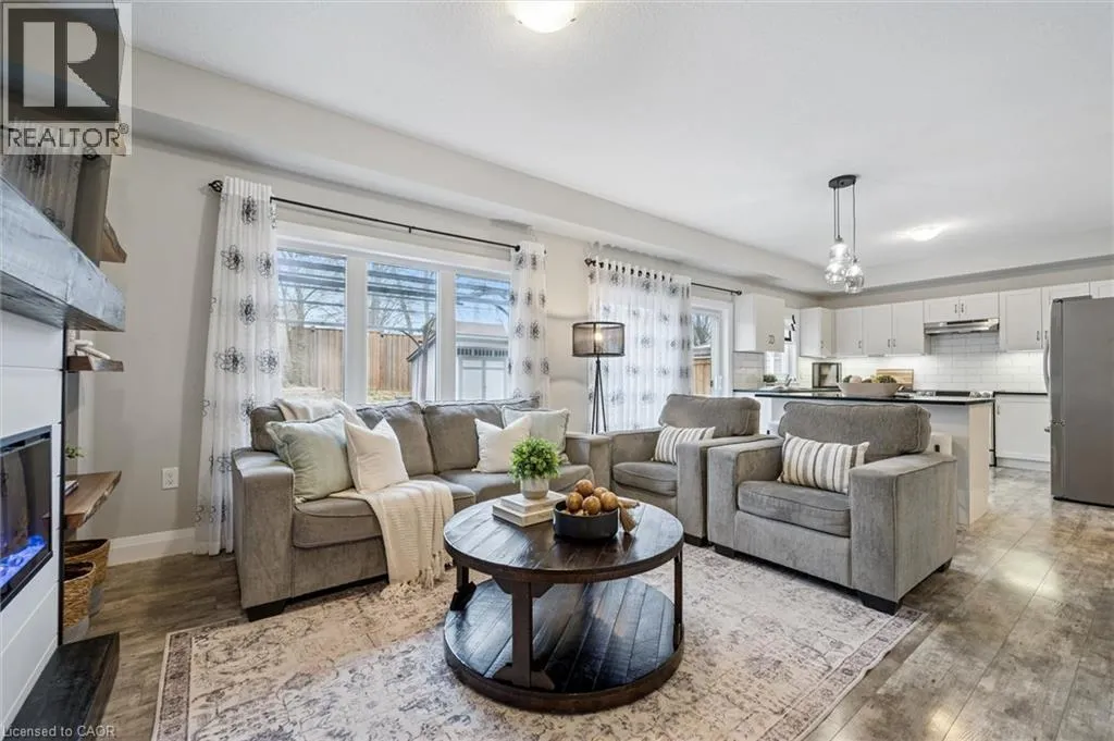 Move-in ready and beautifully finished, this 3 bedroom, 3 bathroom Claysam Homes property is located in great Elmira neighbourhood, walking distance to Riverside Public School and scenic trails. Step inside to a welcoming foyer featuring a warm accent wall and plenty of space for guests and storage. The bright open-concept kitchen and living area overlook the private fenced backyard, creating