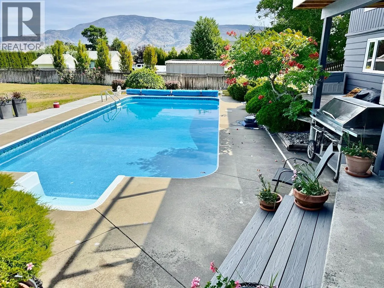 Elevated walk-out rancher set on nearly 3/4 acre in Oliver’s premier view corridor—Yarrow Street. Panoramic sightlines stretch to McIntyre Bluff, framed by a private, fully irrigated yard, composite sun deck, and a resort-style saltwater pool and covered patios designed for seamless indoor-outdoor living. Over 2,000 sq.ft. on the main level offers 3 bedrooms, 2 gas fireplaces, and a reimagined kitchen/dining
