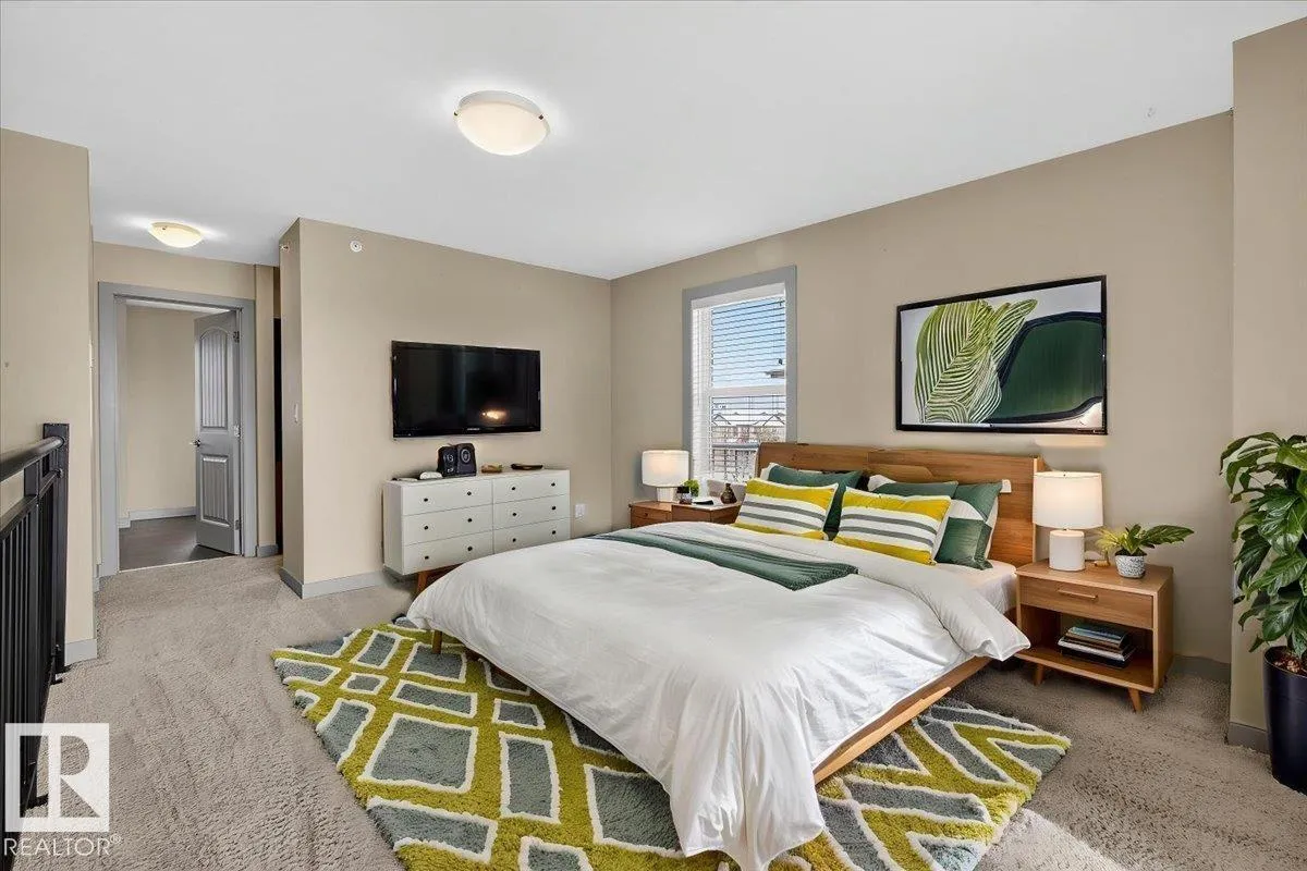 Stunning corner executive townhome with extensive upgrades and one of the largest floorplans in the complex. The bright, open main floor boasts oversized windows, custom stone feature walls, and sleek modern steel railings. Gourmet kitchen features stainless steel appliances, granite countertops, designer hood fan, and access to a spacious balcony. The second level offers two large bedrooms, a full 4-piece