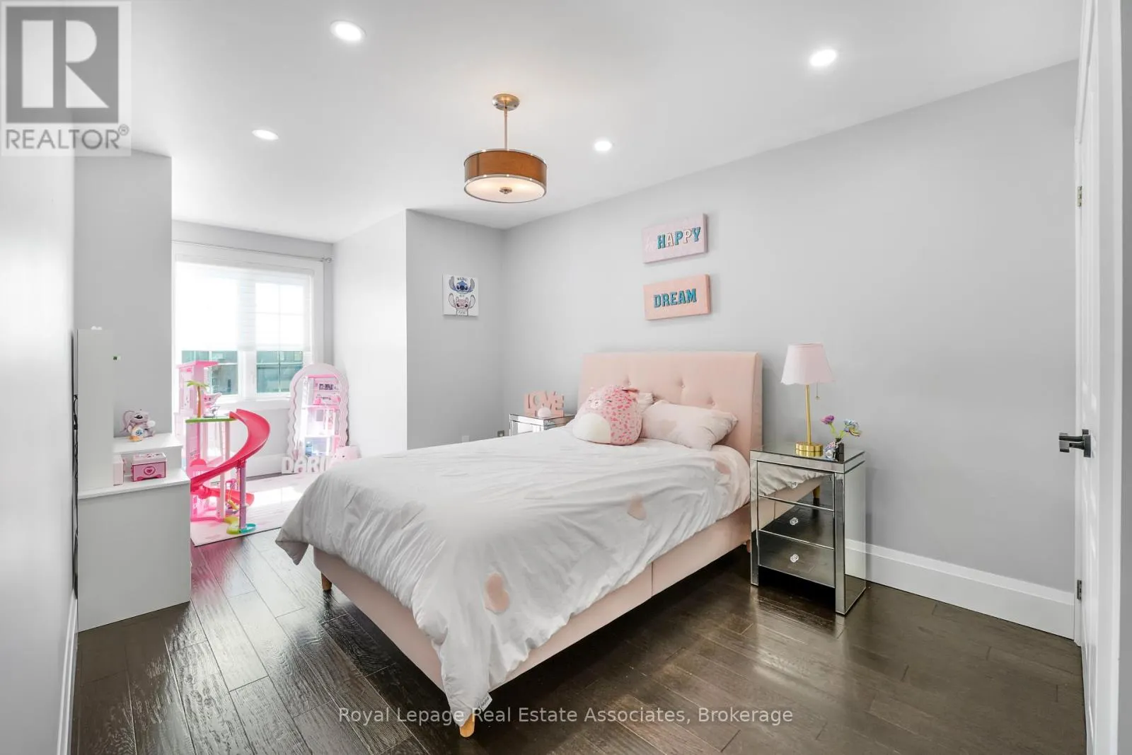 Absolutely stunning 4-bedroom, 4-bathroom semi-detached home on an oversized pie-shaped lot, loaded with high-end upgrades throughout. Hardwood flooring flows seamlessly through the foyer, living, and formal dining areas. The gourmet kitchen features a center island and walk-out to a beautifully landscaped backyard complete with stonework, sprinkler system, remote-controlled LED lighting, a 20′ x 20′ flagstone patio with pergola, and an
