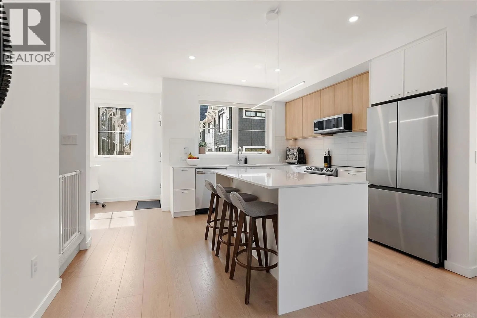 Welcome to Greyson Townhome Collection by Abstract, offering timeless design with modern comfort. This bright, corner home with unobstructed sight lines to the South & West is one of the finest, with 1,854 sf of thoughtful living space and large windows that fill the home with natural light. The main level features a stylish kitchen with quartz counters, large island,