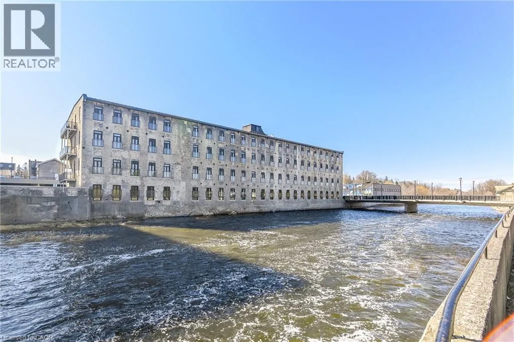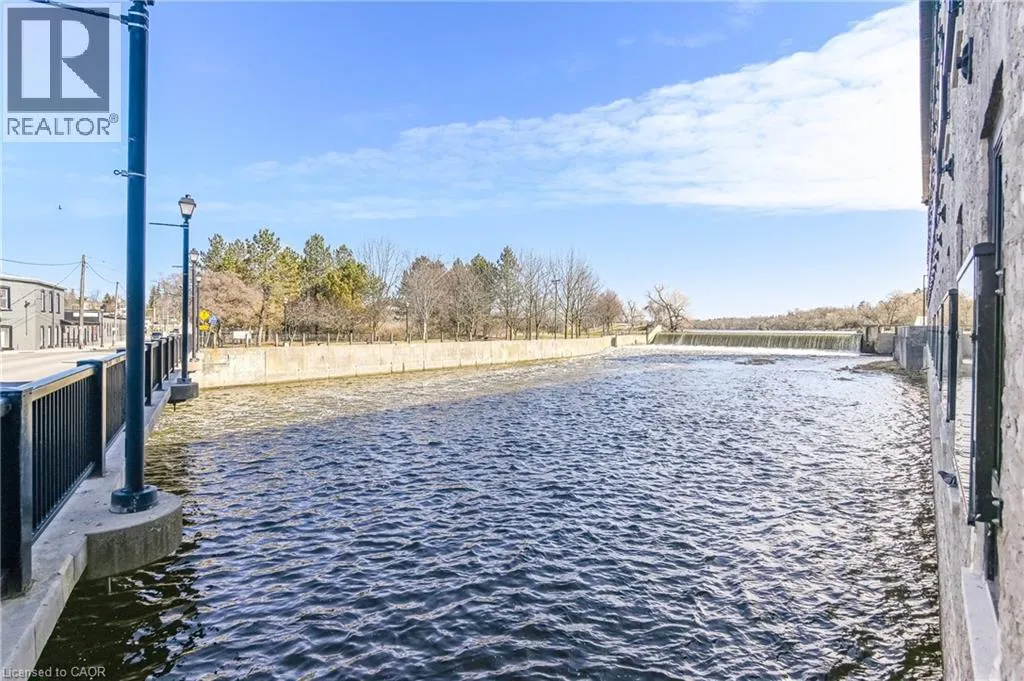 Rarely offered opportunity to lease a unit on the top floor in this luxury historic converted building in the heart of Hespeler Village. This nearly 1,300sqft 2 bed, 2 bath suite showcases original post and beam construction, soaring 15′ ceilings, and plenty of windows with Juliette balconies which frame unobstructed views of the Speed River. Thoughtfully designed with a spacious,